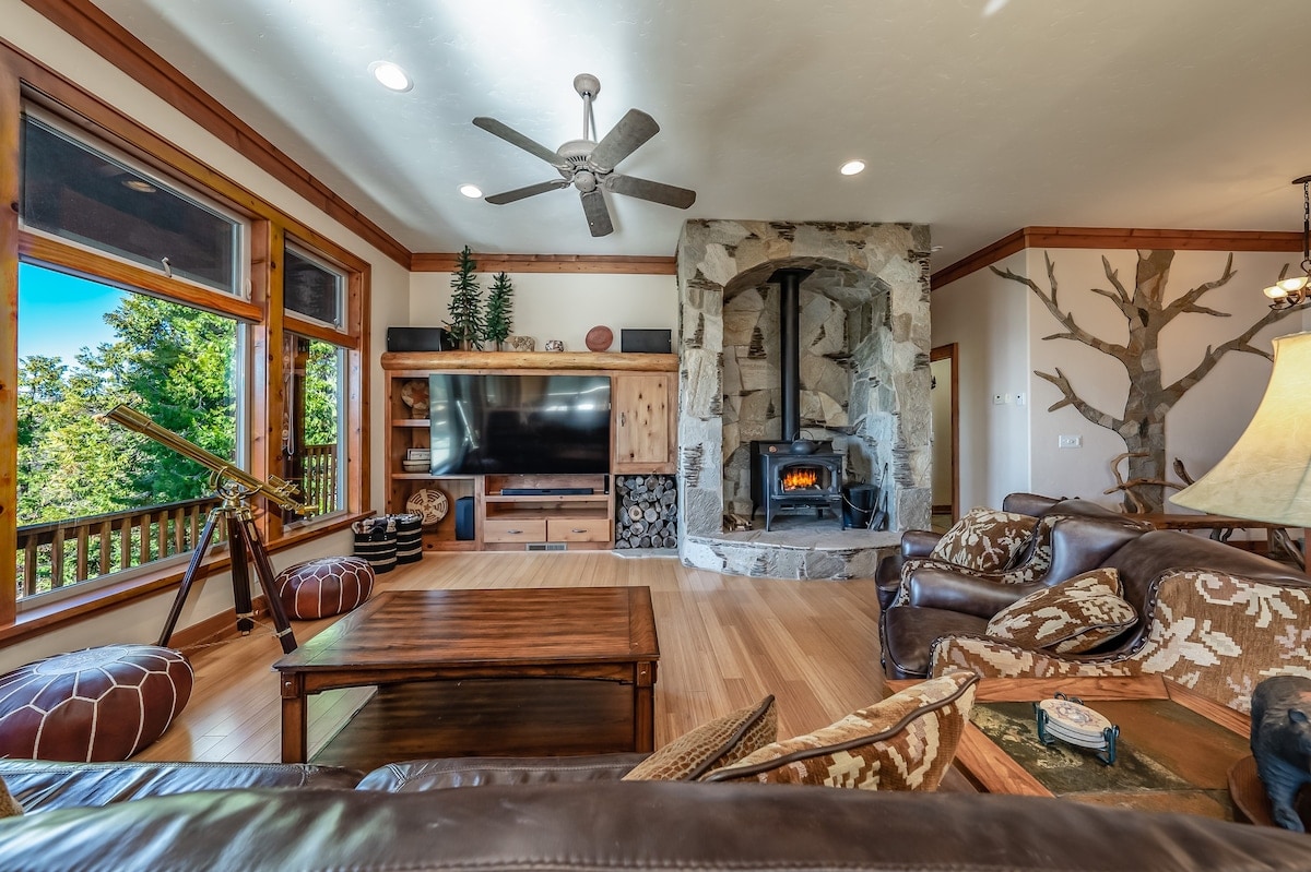 Stell dir ein Bergrefugium mit einer privaten Hütte auf einem Berg vor, abseits von allem, umgeben von Aussicht, Bäumen und Natur, während du 5 Minuten von der Stadt, Geschäften und 17 Meilen vom Eingang von Yosemite entfernt bist. Spektakuläre Aussicht auf die Sierra Nevada Berge von der Terrasse und in der Hütte mit raumhohen Fenstern, die die Aussicht hereinlassen. Erlebe Sonnenaufgänge, Sonnenuntergänge, Natur, Sternenbeobachtung und Feuer. Die Hütte bietet ein einzigartiges Erlebnis! Entspanne dich, schalte ab und genieße die Aussicht in dieser friedlichen, romantischen und ruhigen Umgebung.