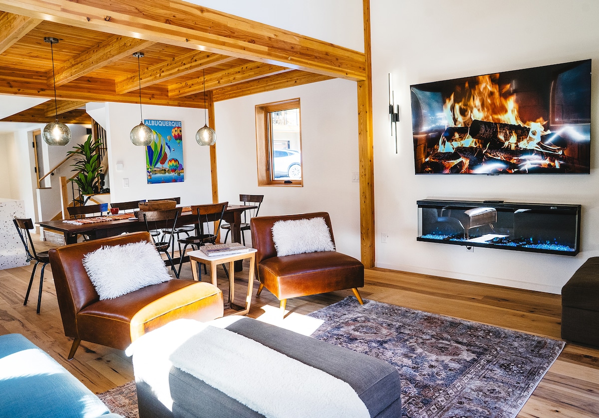 This spectacular place is close to everything, making it easy to plan your visit! It’s the only stand-alone condo in Angel Fire (no other units attached to this one)! It’s easy walking distance to Angel Fire Resort Ski Area and Bike Park. The setup is great for 4 people with a nice king sized bed in the master and a queen sized La-Z-boy sleeper sofa in the living room! Plenty of deck space outside of the condo and a nice area to grill! Huge smart TVs and fiber optic WiFI are in the condo as well