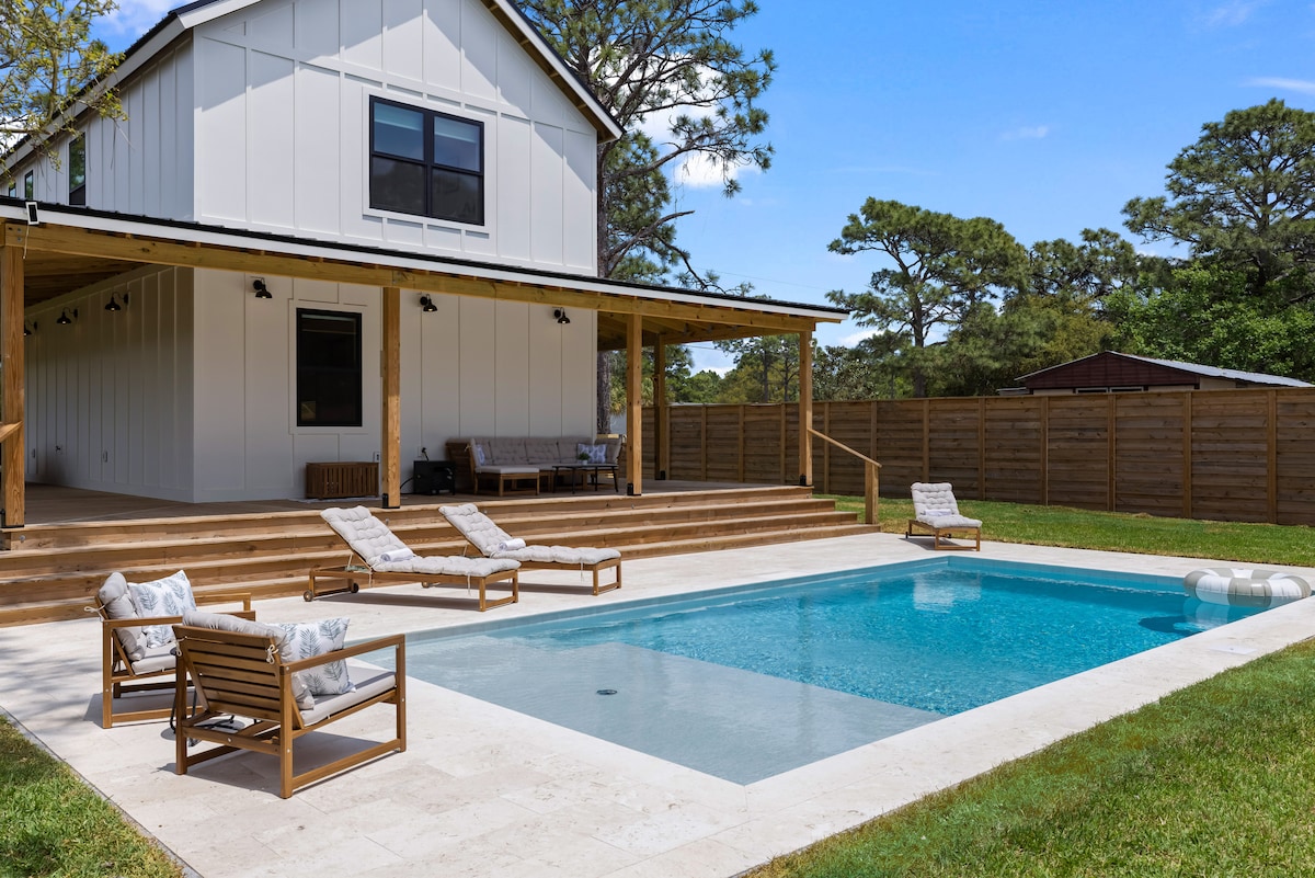 EIN NEU GEBAUTES LUXURIÖSES FERIENHAUS IM COTTAGE-DESIGN MIT PRIVATEM/BEHEIZTEM POOL* UND GOLFKART im Herzen von Santa Rosa Beach an der 30A. Dieses Strandhaus liegt zwischen den Bäumen und ist dennoch nur wenige Minuten von den weißen Sandstränden entfernt. Sonne dich tagsüber und entspanne dich nachts in den Außenbereichen, die von einem ruhigen Waldgebiet umgeben sind. Es ist, als würde man aus einer Welt direkt in eine andere eintreten. Komm und entspann dich und genieße die Ruhe und den Frieden dieses gemütlichen Refugiums.