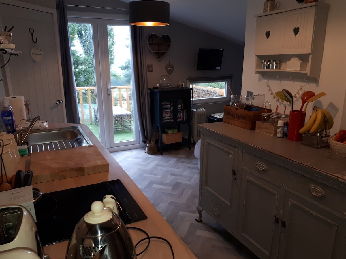 This quirky wooden stand alone space comprises a double bed and is ideal for two people but can sleep four at a push as there is a double sofa bed. Situate in the heart of Devon, the flat has a kitchenette, combined living and sleeping area and a separate toilet and shower. The flat is reached via stairs and is unsuitable for people with mobility issues. There is a smart TV, DVD and music system but no internet. This space is non smoking. Garden furniture, disposable BBQ, toys are available.
