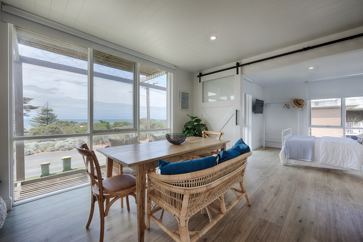 Come and enjoy the open space. Our guest house is situated on 32 acres of country landscape with ocean views. Comfortably furnished. Large king bed, bunk room, fold out queen koala sofa & two single fold out occasional chairs. Both Bathroom have 2 showers 2 toilets. ( dormitory style bathrooms ) Modern kitchen with appliances. Outdoor bbq area, fire pit and plenty of room to play. Less than 5 mins drive to Torquay beach and shops. The best part is the freedom and fresh air:)