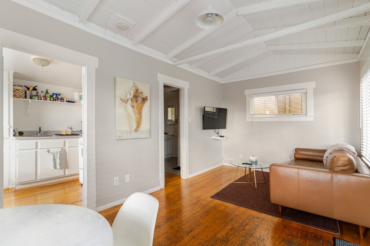 1 person for 31 night stay. Stand alone bungalow w/ queen size bed. Has air conditioning, Parking & bikes. Safe area, close to shops, and dining. Close to Hermosa pier. 1 block to Redondo pier, & bike path. 3 1/2 blocks 2 Beach, walk to coffee shops & restaurants. Has Kuerig. Washer/Dryer avl. Has roku, WIFI. Close to Portofino & Shade hotel, Redondo Beach hotel. Free movies: Please note that there is a very tame and friendly squirrel who stops by to visit. Please do not feed.