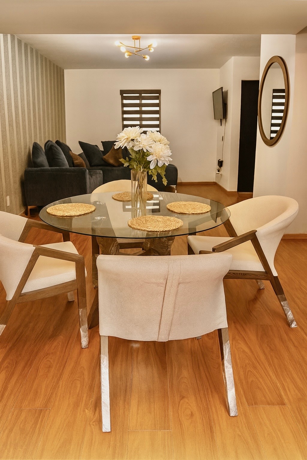 Schaffe einzigartige Erinnerungen, die dich wie zu Hause fühlen lassen. Es befindet sich in einer der besten Gegenden von Torreón, nur wenige Minuten von Einkaufsplätzen, Restaurants und dem Flughafen entfernt. Es verfügt über eine Dachterrasse, die ideal ist, um unvergessliche Sonnenuntergänge zu betrachten, während das gut ausgestattete Fitnessstudio Sie aktiv hält.
