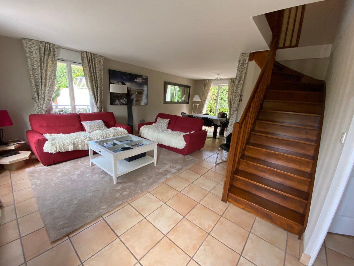 Wunderschöne, denkmalgeschützte Villa, vor kurzem renoviert und sorgfältig eingerichtet. Außergewöhnliche Lage auf den Höhen von Trouville mit Panoramablick auf das Meer. Ideale Lage, 5 Minuten zu Fuß vom Stadtzentrum und dem Strand entfernt. Die Villa ist für Ihren Aufenthalt komplett ausgestattet. Die gesamte Wäsche ist inklusive sowie die Reinigung am Ende Ihres Aufenthalts. Die Villa ist ohne Gegenüber und verfügt über einen schönen geschlossenen Garten mit einer großen Terrasse mit Meerblick. Kostenloses Parken. 4 Sterne möbliert für Tourismus