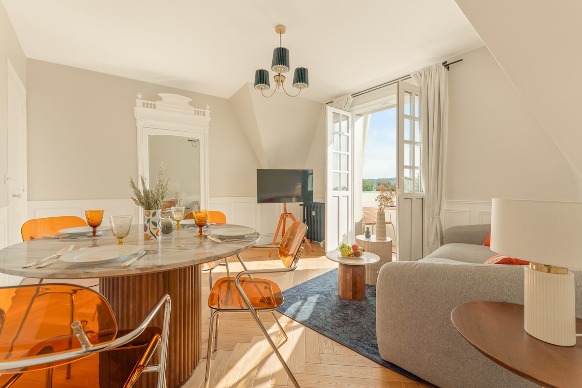 2nd floor accommodation with a balcony for 4 people in a renovated Norman manor, June 2025. Cool in summer. Self-check-in. Near Deauville train station, Trouville, racetracks, beach, casinos... Queen-size bed 160cm Sofa bed for 2 Balcony Fully equipped kitchen with Nespresso Travel cot High chair Linens and towels except for travel cot Dishwasher Smart TV Free Wi-Fi Free parking Free EV charger