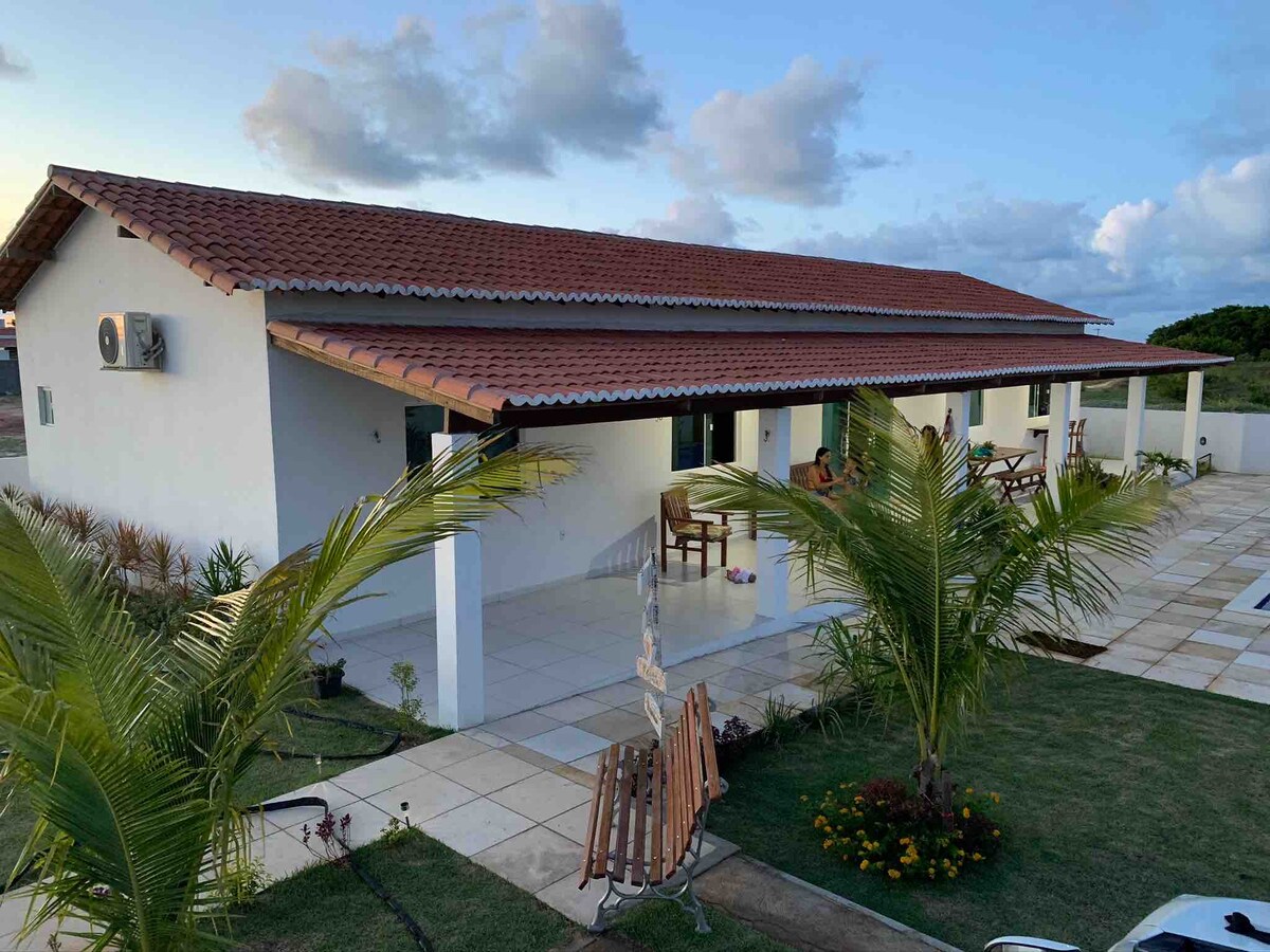 CASA MÓDICO BEACH FRONT HOUSE, SAFE and QUIET. PERFECT for FAMILY, FRIENDS and KITE LOVERS! In front of the sea, at the Kite Point of São Miguel do Gostoso -Capacity 8 PEOPLE with comfort -4 ROOMS, all suites with bathroom -AR COND. in all rooms -FULL COOKING -DINING ROOM -GOURMET AREA WITH DINING TABLE -BREAKFAST and ROOMS CLEANING Included -DECK of 80m2 in front of the house -WASHING MACHINE -PRIVATE PLOT in front of the SEA -PRIVATE ACCESS