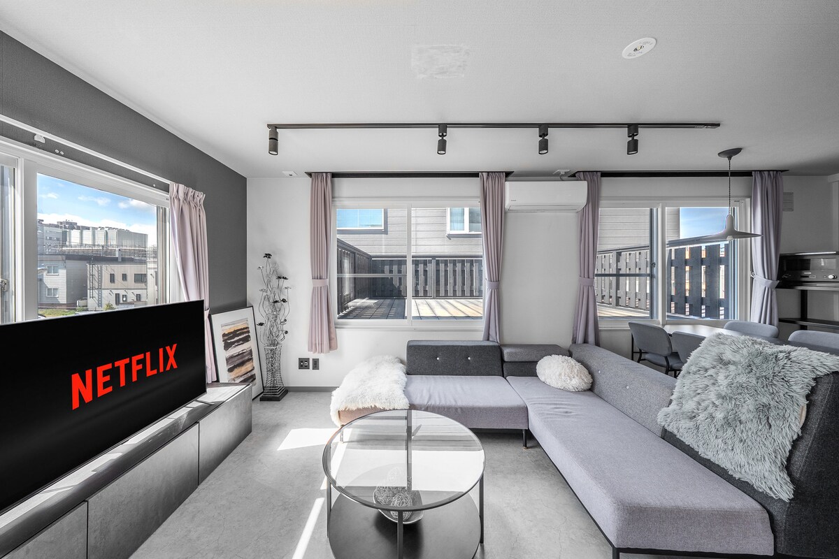 2026年1月オープン。 札幌観光を楽しみながら、夜は静かにくつろぎたい方へ。 最寄駅のJR白石駅から徒歩7分、札幌駅まで電車で2駅・約5分。最上階に位置する40㎡のインテリアデザイナー監修・和モダン1LDKです。最上階からの夜景も魅力のひとつ。 ダブルベッド2台とダブルサイズのソファベッド1台を備え、大人3名様まで快適、6名様までご利用可能です(6名様の場合はややコンパクトになります)。 周囲は落ち着いた環境で、観光や外食のあともゆっくりお過ごしいただけます。 徒歩1分には大型スーパー・ドラッグストアがあり、買い出しをして部屋でくつろぐ滞在にも便利です。近隣にコインランドリーや有料コインパーキングもございます。 4K50インチテレビでYouTubeやNetflixなど視聴可能。キッチン・洗濯機・Wi-Fi完備、家具・家電はすべて新品で長期滞在にも不自由なくお使いいただけます。 冬は備え付け暖房に加え小型ファンヒーター、加湿空気清浄機もあり快適です。エントランスはオートロックでセキュリティも安心。 小さなお子さま連れ向けに、ベビーチェアやベビーバスをご用意しています。