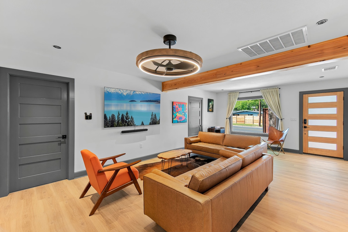 South Austin oasis minutes from South Congress & Zilker Park. Soak in the hot tub, relax in the 6-person infrared sauna, or cool off in the temperature-controlled cowboy pool —perfect for bachelorettes, family reunions, or group getaways! This newly renovated home is near Austin’s best dining and nightlife. The backyard oasis includes fans, grills, comfy seating, and a Peloton, rower, and free weights. Inside, the open chef’s kitchen and modern design make this the ultimate ATX retreat.