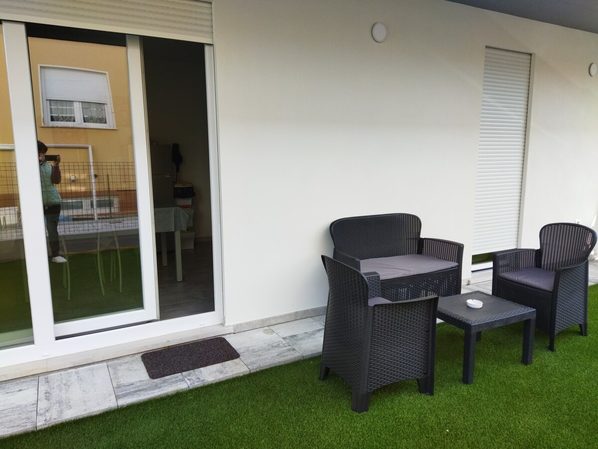 400 Meter vom Strand entfernt, große renovierte Wohnung von 60 qm plus bewohnbarer Balkon, Funktional eingerichtet, Wohnbereich mit hellen Fenstertüren, Küche, Mikrowelle, Geschirrspüler, Wasserkocher, Kaffeemaschine, Sat-TV, 5G-WLAN und Schlafsofa für 2 Personen Doppelzimmer mit Fenstertür, Kleiderschrank und TV Badezimmer mit WC, Bidet, Duschkabine Abstellraum im Freien mit Waschmaschine Großer Balkon, auf dem man bequem essen kann Klimaanlage in jedem Raum