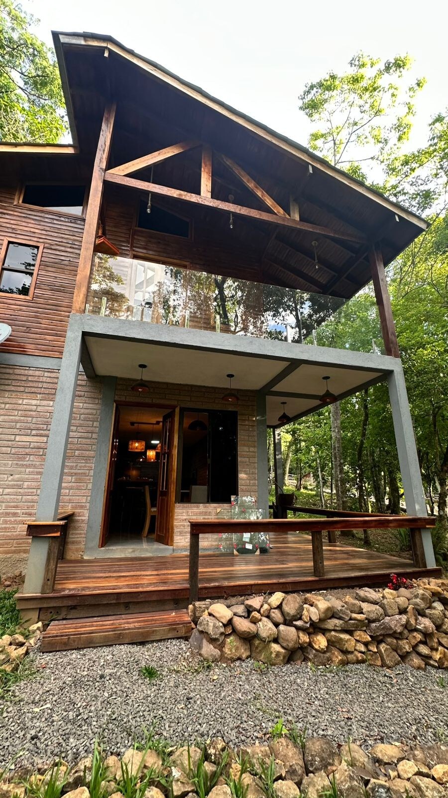 O chalé é um refúgio acolhedor com vista panorâmica de 270°, onde o nascer e o pôr do sol são um espetáculo. À noite, o céu estrelado e as luzes da cidade criam um clima romântico, seja no fogo de chão ou na lareira de pedra. Da cama ou do sofá, o amanhecer surge pela frente envidraçada. Tudo isso a menos de 20 minutos de Gramado, com 13 km asfaltados e menos de 1 km de estrada de chão tranquila. Venha viver momentos memoráveis em meio à natureza, sem abrir mão do conforto.✨