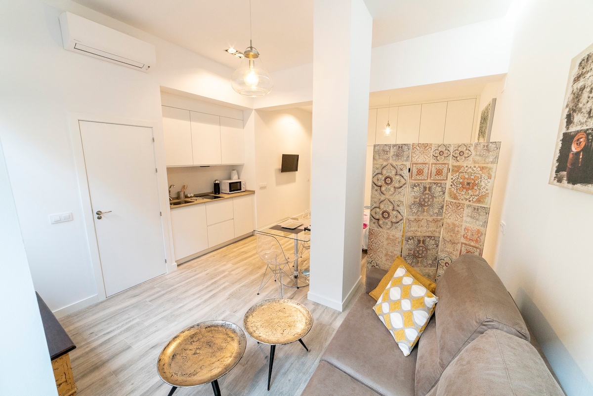 Studio befindet sich im Zentrum von Sevilla in der Nähe der wichtigsten Denkmäler und touristischen Attraktionen. Es hat eine moderne Dekoration, sehr gemütlich und perfekt ausgestattet mit allem Komfort. Es ist ideal für Paare und Singles. Dadurch fühlst du dich wie zuhause.
