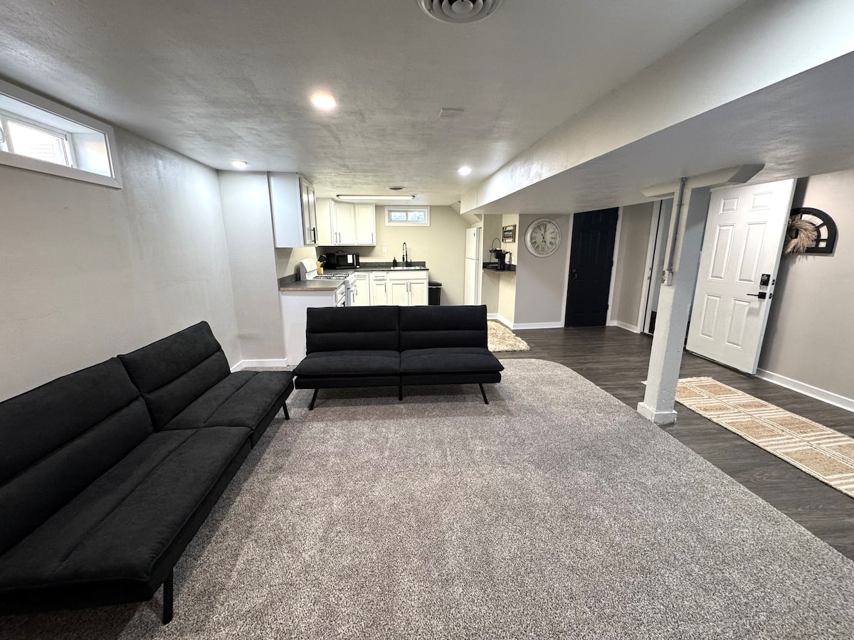 Entdecken Sie Black Beauty – einen einzigartigen Rückzugsort, der für Entspannung und Ruhe konzipiert wurde. Erleben Sie unsere einladende 2-Zimmer-Wohnung mit 1 Badezimmer, einer voll ausgestatteten Küche und einem komfortablen Wohnzimmer. Genieße absolute Privatsphäre mit deinem eigenen schlüssellosen Zugang. Wir freuen uns schon sehr darauf, dich bei uns willkommen zu heißen🖤. *Bequemes Aufladen von Elektrofahrzeugen mit einem NEMA 14-50-Stecker (40 Ampere)* Wohnung 2