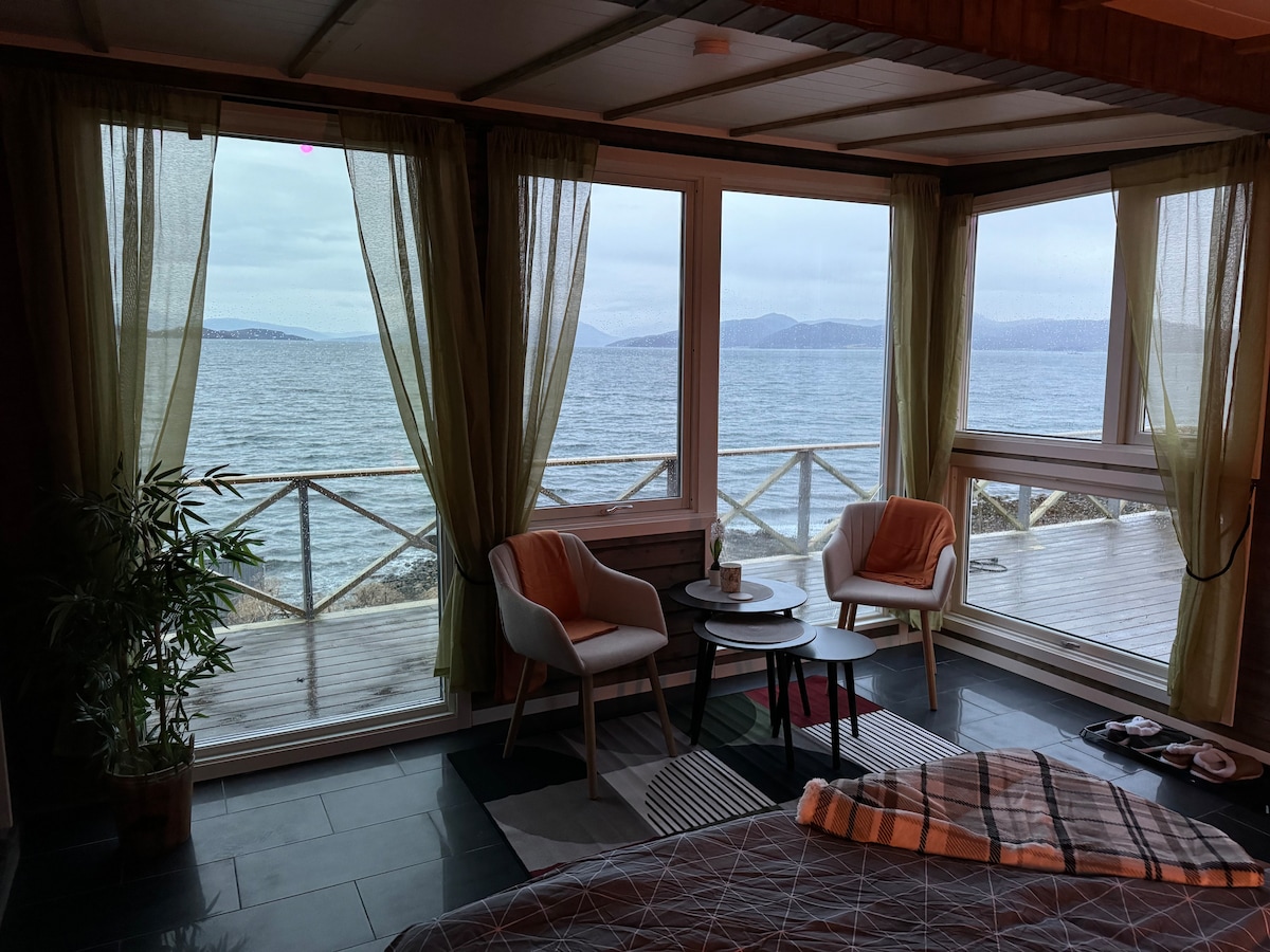 Stilvolle Wohnung auf der obersten Etage am Meer im Zentrum von Tromsø mit einem beeindruckenden Blick auf die arktische Kathedrale, Tromsø-Brücke, Seilbahn, Mitternachtssonne und die Nordlichter. Genieße Hurtigruta vom Sofacor aus und höre Wellen, die draußen läuten. Der Eingang ist Teil einer verglasten Terrasse mit Blick nach Süden. Das Zentrum ist einen 10-minütigen Spaziergang entfernt. Die Wohnung ist offen, einladend und ein schöner und komfortabler Ort, um deine Zeit zu verbringen. Altersbeschränkung: mindestens 25 Jahre. RAUCHEN VERBOTEN.