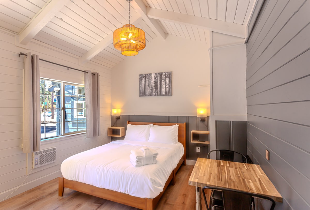 Unser lebhaftes Gasthaus wurde kürzlich mit einem klassischen Retro-Flair renoviert und befindet sich in idealer Lage, nur eine kurze Fahrt von allen besten Attraktionen von Tahoe entfernt. Gäste werden mit knotigen Pinien, farbenfrohen Akzenten und geschmackvollem Bergdekoration verwöhnt. Nach einem ganzen Tag voller Erholung im Freien kehren Sie gerne zurück und kuscheln am Kamin, bereiten Sie eine Mahlzeit in der Küchenzeile zu oder bestellen Sie zum Mitnehmen in einem der vielen Restaurants, die zu Fuß erreichbar sind. Sieh uns auf IG @tahoe_Mountain_Inn an