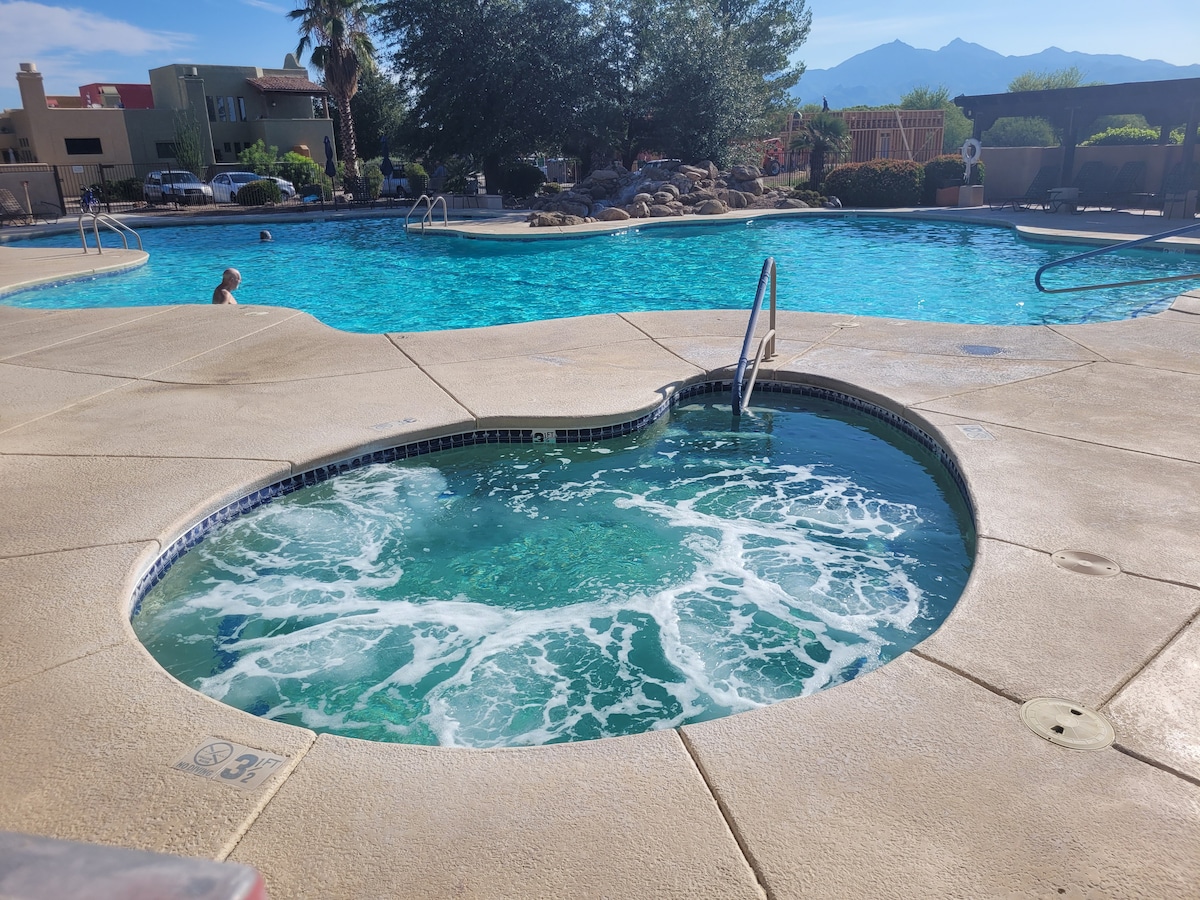 Nur einen kurzen Spaziergang von den Kunstgalerien, Geschäften und den tollen Restaurants im Tubac Village entfernt. Ein großartiger Ort, um alle Abenteuer zu beginnen: Wandern auf dem Anza Trail, Wandern, Radfahren, Golfen, Vogelbeobachtung, Fotografie, Sternenbeobachtung und vieles mehr. Von unserer Terrasse aus genießt du atemberaubende Sonnenauf- und -untergänge, während du gleichzeitig ein Abendessen unter den Sternen oder dein morgendliches Frühstück genießen kannst. Der Zugang zum Fitnessraum, zum beheizten Pool und zum Whirlpool ist das ganze Jahr über möglich.