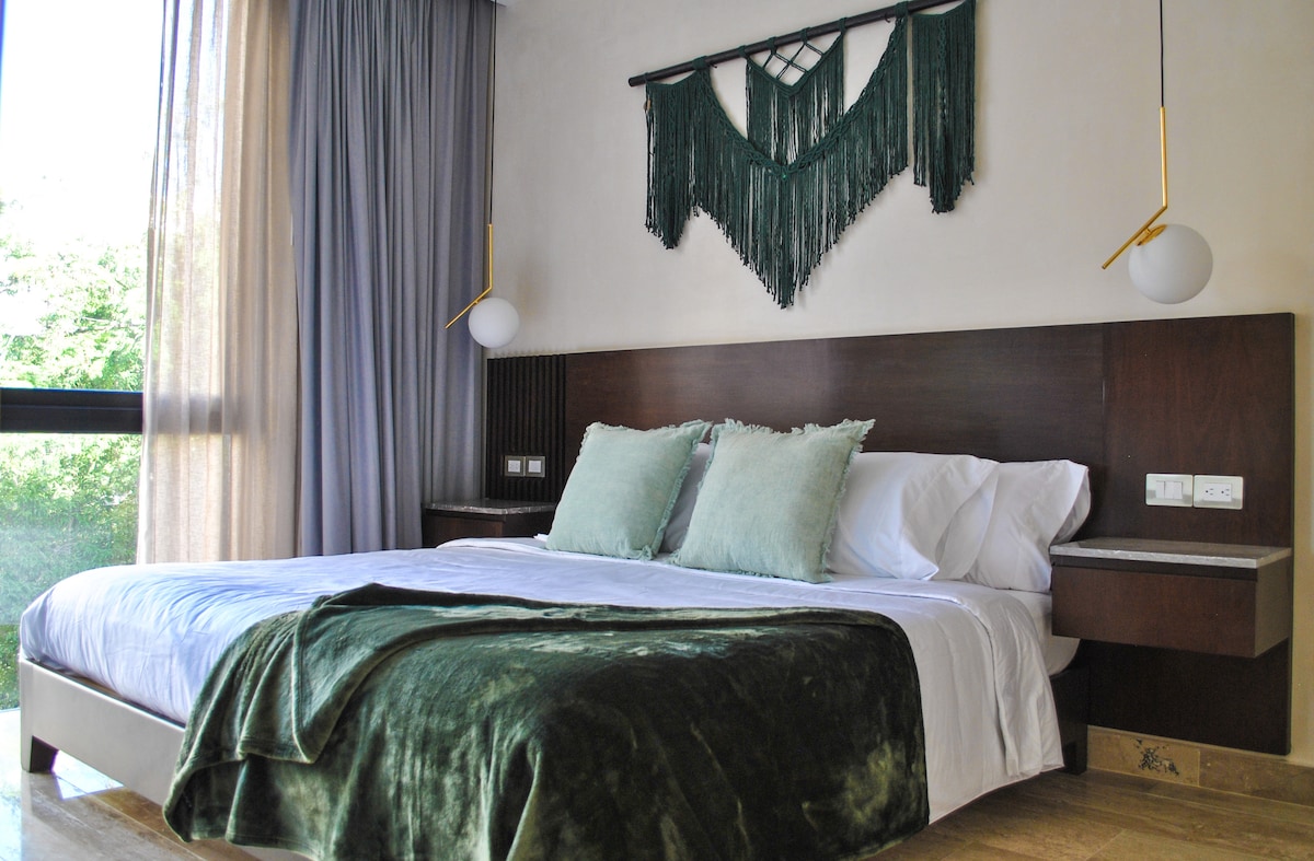 UNGLAUBLICHES LOFT MIT 1 SCHLAFZIMMER, DOPPELTER HÖHE UND DIREKTEM ZUGANG ZUM POOL. ✅Enthält 2 Fahrräder und Roller (Checa-Bedingungen ) ✅ATVs (Vermietung) Erlebe das Tulum-Erlebnis in einem umweltfreundlichen Designraum, umgeben von Gärten und mit direktem Zugang zum Hauptpool von deinem Balkon aus. Es befindet sich in einer der sichersten und privilegiertesten Gegenden von Tulum und bietet unvergleichliche Annehmlichkeiten wie ein natürliches Cenote, ein voll ausgestattetes Fitnessstudio und eine spektakuläre Dachterrasse mit Infinity-Pool.