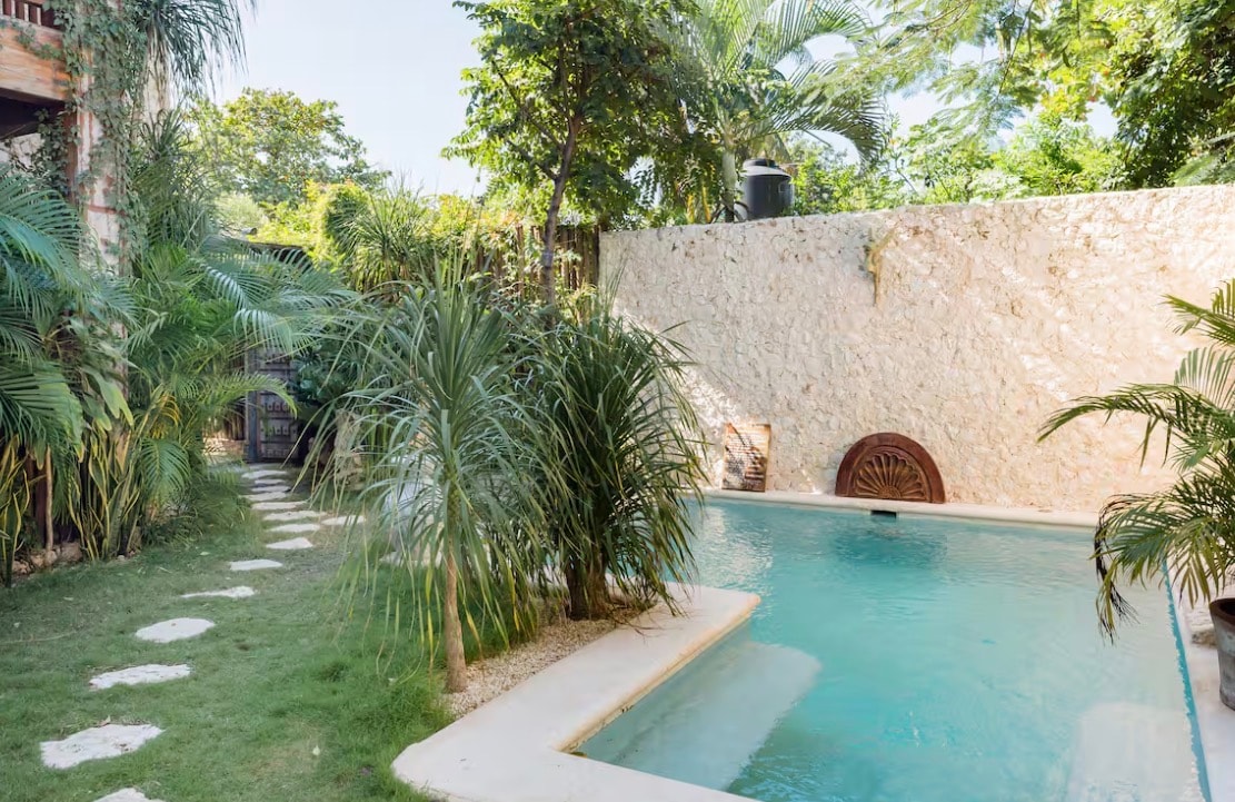 Geheimer Ort mit türkisfarbenem Pool im Zentrum von Tulum