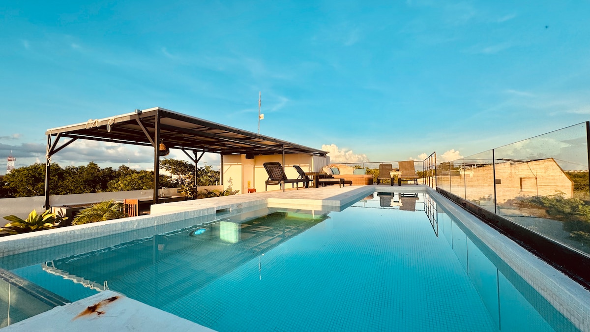 Mun 103 Tulum Zen Residences is a custom designed 3-level building with views of the Mayan Ruins and Tulum National Park. - Retreat to nature, but walk downtown or bike to the beach in less than 10 minutes. - Enjoy the sunsets from the terrace overlooking the jungle - Gym -Jacuzzi -25-meter pool -Yoga area -Open-air cinema -Stay comfortable with hotel-quality mattresses and sheets. TEXT ME NOW to check availability