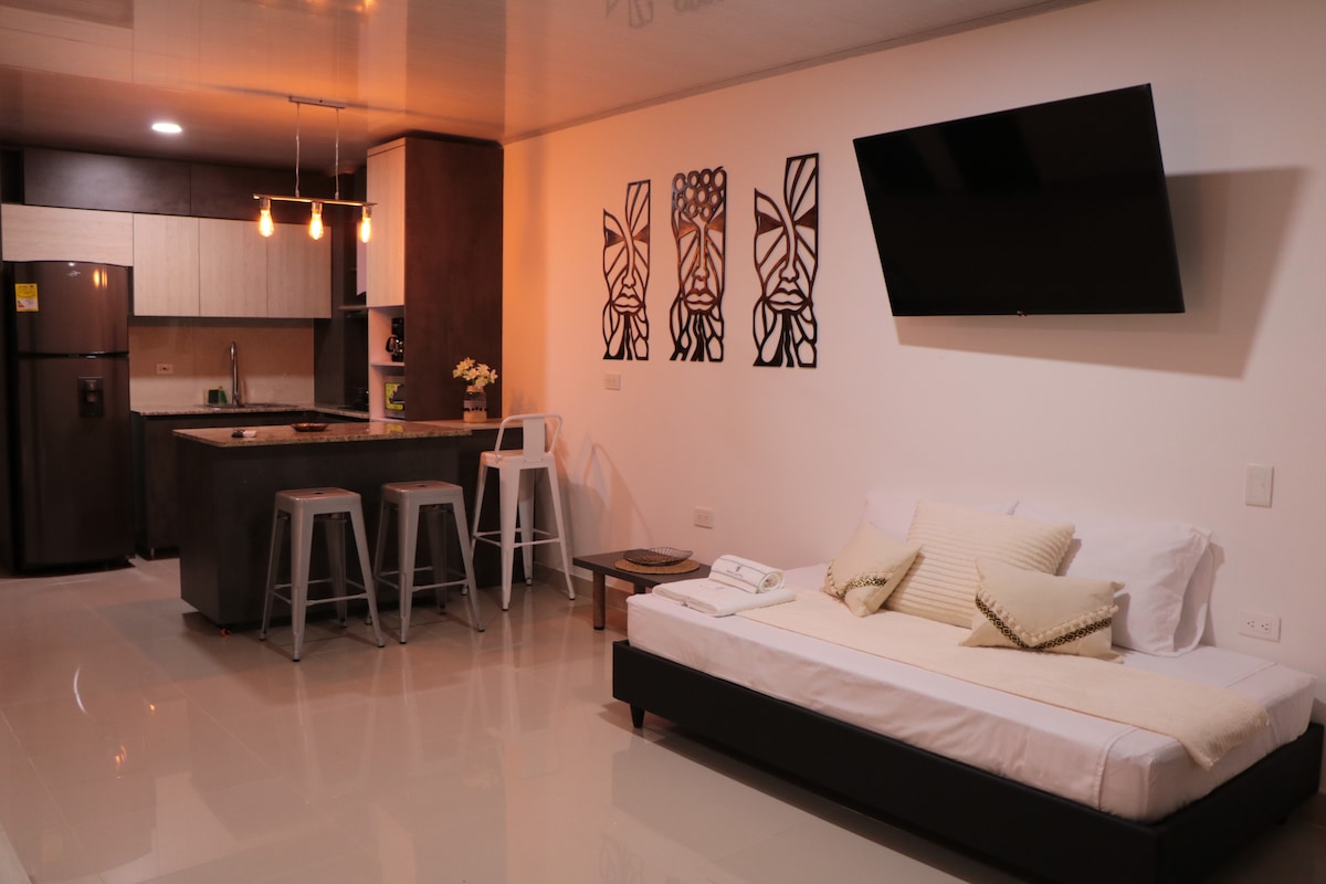Komfortables Studio-Apartment für 3 Personen mit 1 Doppelbett und einem Einzelbett. Es verfügt über eine Klimaanlage, ein eigenes Bad und eine voll ausgestattete Küchenzeile, eine perfekte Option für Geschäftsreisende und Touristen. Es befindet sich in einem ruhigen und sicheren Viertel im zentralen Bereich von Tumaco und bietet eine ausgezeichnete Anbindung an Transportdienste. MAXIMAL 3 GÄSTE, KEINE BESUCHER. KEINE HAUSTIERE::