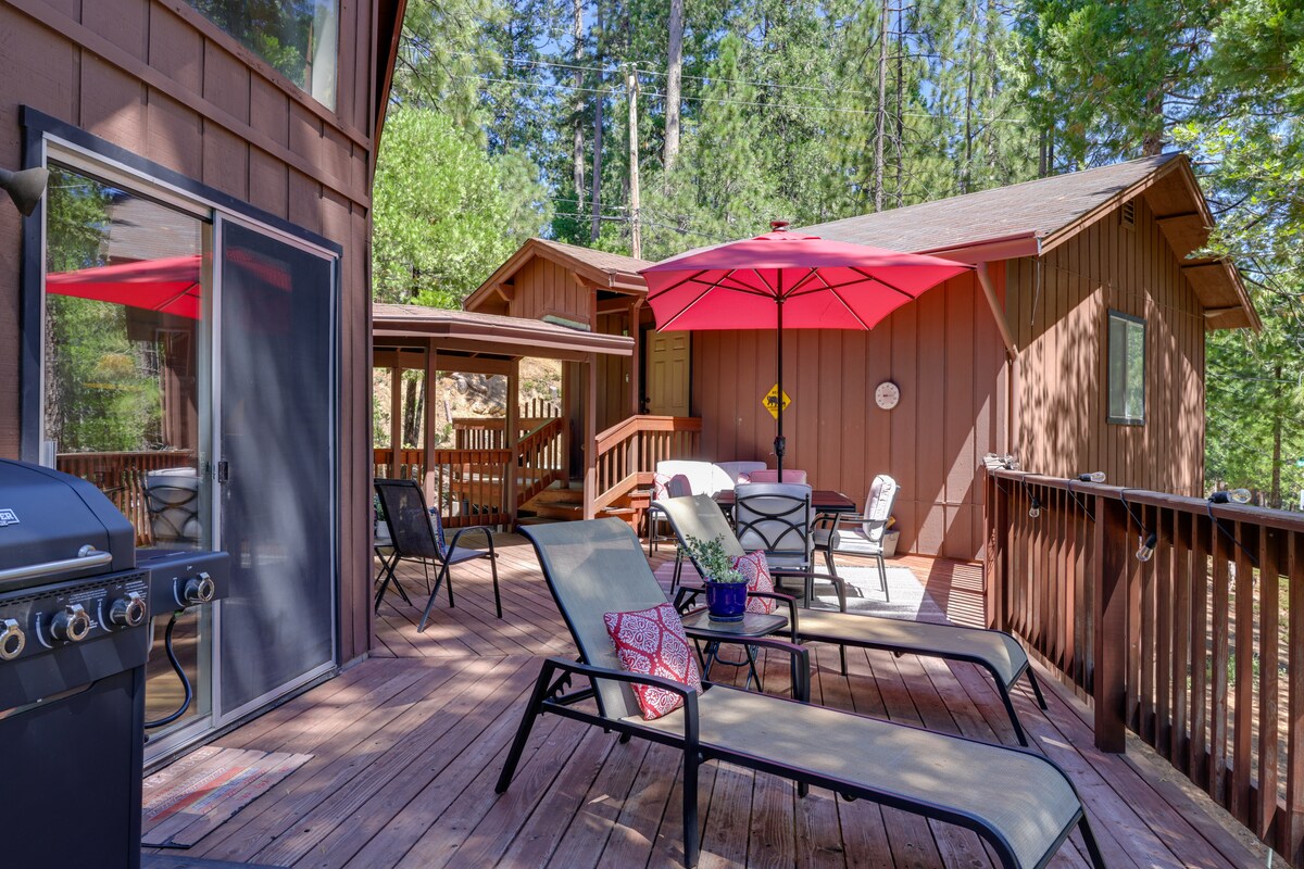 Dog Friendly w/ Fee | Walk to Beach | 26 Mi to Yosemite Vacation mode begins the moment you arrive at this Groveland cabin in Pine Mountain Lake! Designed for easy family getaways and group adventures, this inviting vacation rental puts you close to the wonders of Yosemite National Park and the charming restaurants and shops of Groveland. With a wraparound deck and easy access to lakes and hiking trails, this home offers the perfect blend of adventure, comfort, and classic NorCal charm.