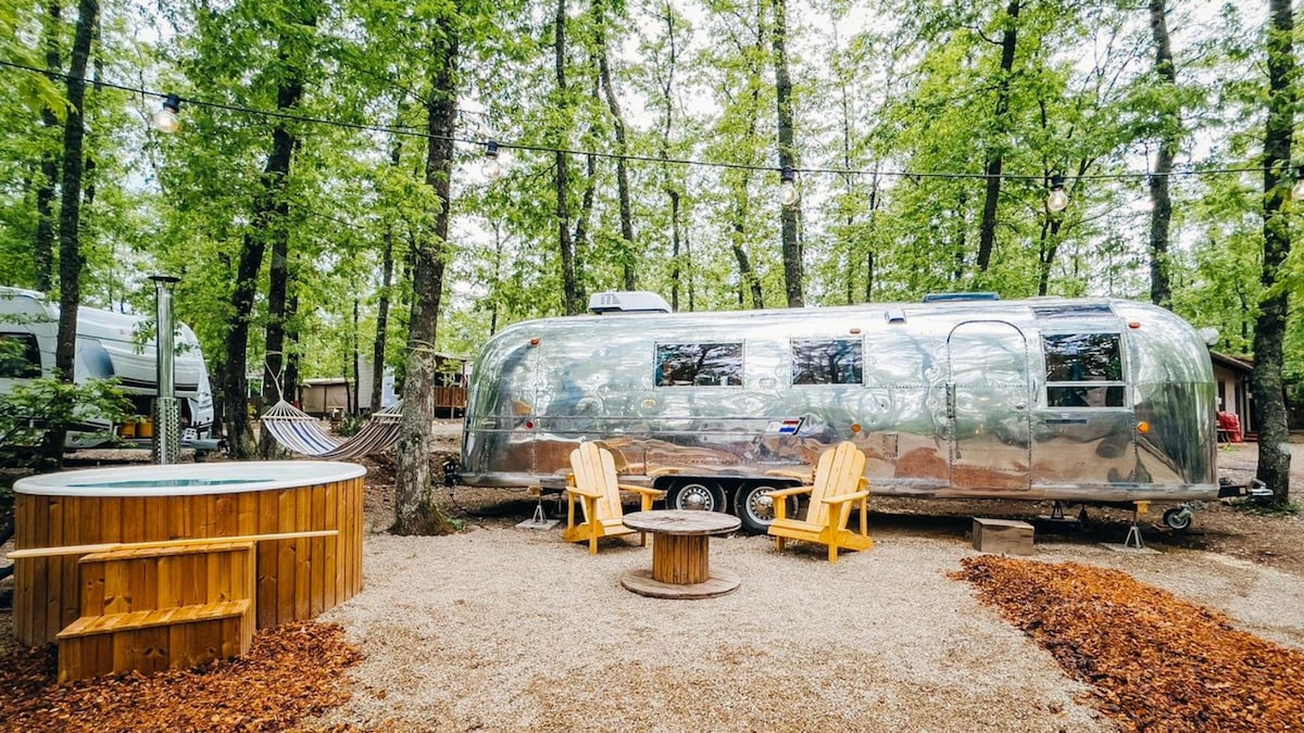 Im CHIANTI GLAMPING RESORT, eingebettet in einen Wald inmitten der Chianti-Region, befindet sich Airstream, ein Wohnwagen aus den 70er-Jahren mit einem einzigartigen und glänzenden Stil. Die Besonderheit dieser Unterkunft ist ihr Äußeres, das vollständig aus verchromtem Metall besteht und an die Raumschiffe der damaligen Zeit erinnert. Das Innere besticht durch ein attraktives Design mit Details aus Holz und Aluminium. Airstream wurde komplett renoviert und ist mit allem Komfort ausgestattet, wobei das ursprüngliche Aussehen beibehalten wurde.