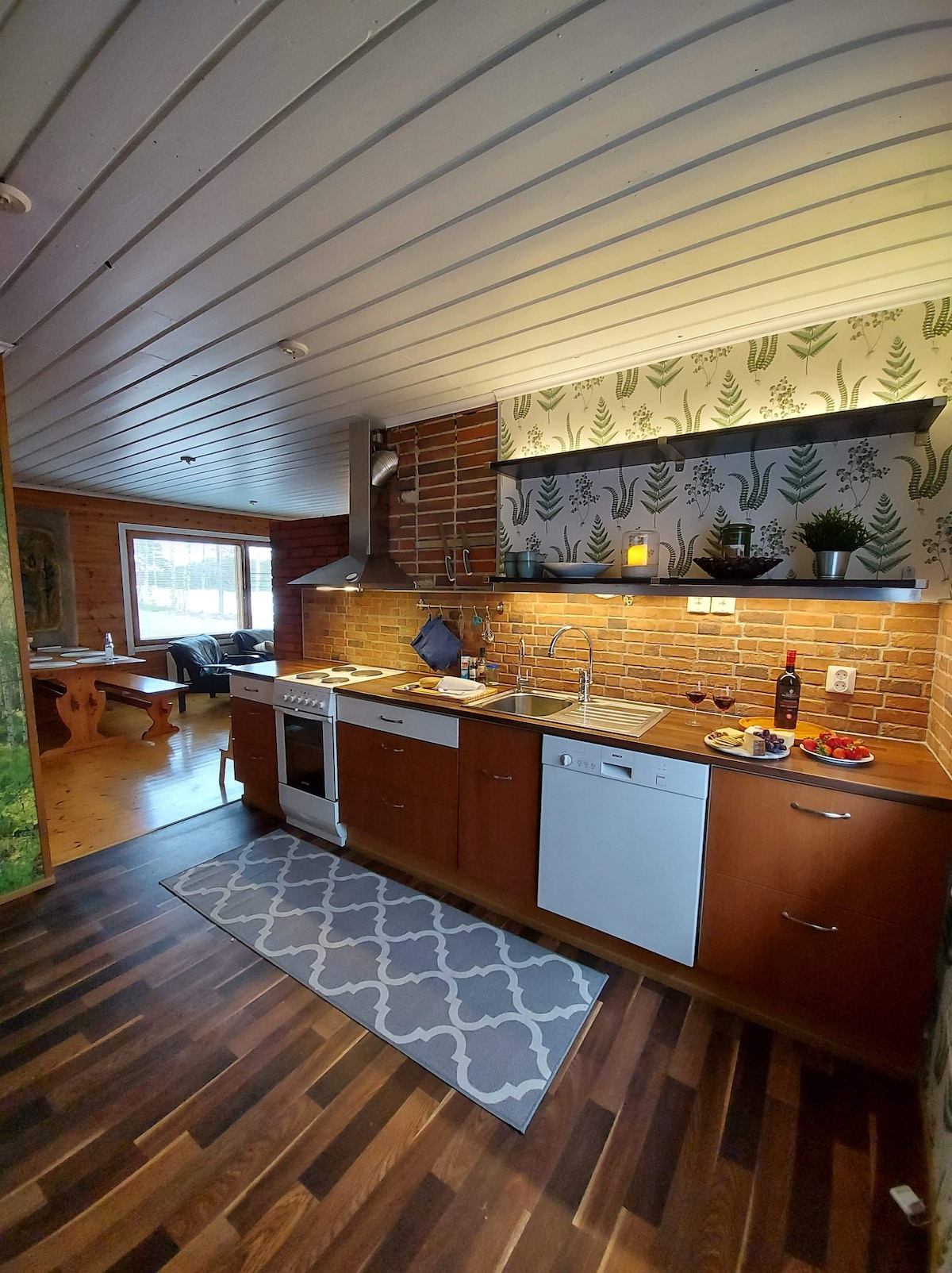 Stilvolle und schön eingerichtete 100 m² große Villa mit großen Fenstern, die einen atemberaubenden Blick auf den See bieten. Gut ausgestattetes Haus, große Terrassenbereiche, Strandsauna und Außenwhirlpool (gegen Aufpreis). Moderne offene Küche, Essbereich, großes Wohnzimmer, 2 Schlafzimmer, Schlafloft für zwei Personen und WC/Bad. Schöne Villa mit herrlichem Seeblick. Gut ausgestattetes Haus, große Terrassen, Sauna am See und Whirlpool (gegen Aufpreis). Moderne Küche, Essbereich, Wohnzimmer, 2 Schlafzimmer, Schlafloft für 2, Bad.