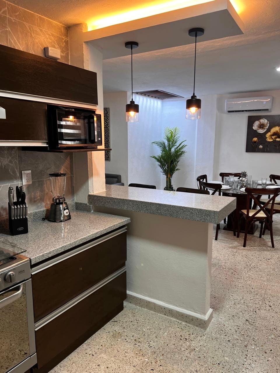 Acabados residénciales, Balcón, totalmente climatizado, internet de fibra óptica, cocina completa, 2 pantallas de tv, Roof Garden con área de lavado.
