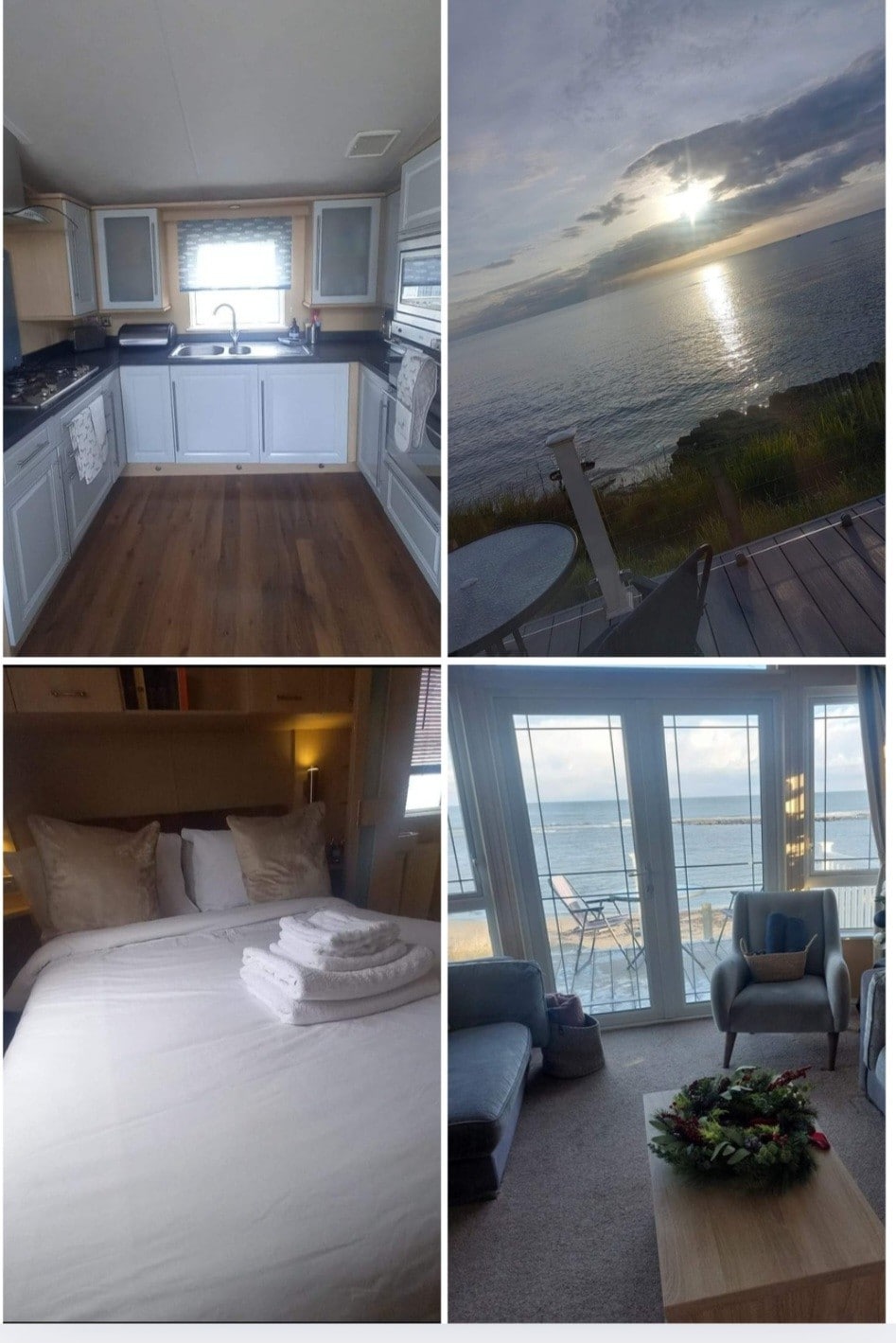 Dieser Wohnwagen mit Strandthema ist der perfekte Ort für eine Auszeit, mit den erstaunlichsten Panoramablick auf die Küste, um sich auf der Terrasse mit großartigem Sonnenaufgang und Sonnenuntergang zurückzulehnen und zu entspannen. Voll ausgestattete Küche, Doppelbettzimmer mit eigenem Bad, das eine Badewanne hat, sodass du ein tolles entspannendes Schaumbad nach einem Spaziergang an den schönen Stränden genießen kannst. Es gibt auch eine separate Toilette mit Dusche, Zentralheizung und Doppelverglasung. Es ist nur einen Steinwurf von der High Street entfernt, mit vielen Restaurants und Pubs zum Ausprobieren.