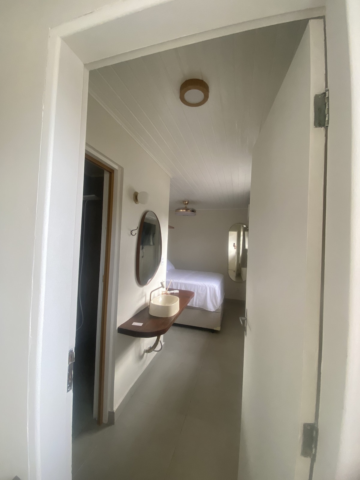 Kompletter Raum für 01 Paar, Nutzfläche 45 m² auf dem Grundstück mit anderen Einheiten. 01 Auto-Discovery-Platz, automatisches Tor. Queensize-Bett, 12.000 BTU Klimaanlage, Ventilator, 50" Smart-TV, exklusive Küche mit Mikrowelle, Minibar, 2-Flammen-Herd ohne Backofen, Mixer, Sandwichmaker, Kaffeemaschine, Tonfilter. Terrasse mit Grill, Glasfaser-Internetzugang, Gemeinschaftspool. Praia Vermelha 100 m, Tenório 400 m, Cedro 1 km. Viel Grün, Vögel, das Rauschen des Meeres und Klimaanlage
