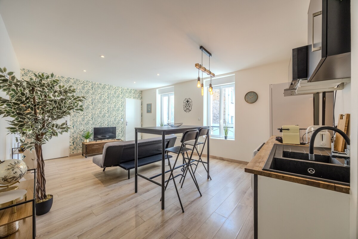 Gemütliche Wohnung von 39 m2, voll ausgestattet, im Stadtzentrum (Paar, Familie, Berufstätige) ✨ Highlights Ihres Aufenthaltes: Schönes Wohnzimmer mit offener und ausgestatteter Küche Geselliger Esstisch für 4 Personen Gemütliches Wohnzimmer mit Schlafsofa Modernes Zimmer (12 m²) Private Terrasse mit Blick auf die Baumlandschaft Reservierter und kostenloser Parkplatz Gartengeschoss (einige Stufen, um dorthin zu gelangen) 💼 Geschäftsreisende willkommen (ruhig, Highspeed-Internet, Nähe zu Annehmlichkeiten)