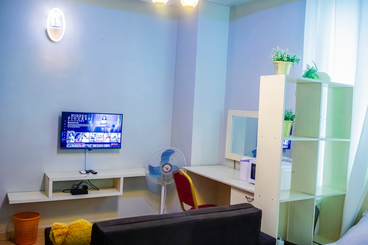 Erschwingliches gemütliches Ein-Zimmer-Shortlet in Enugu, 15 Minuten vom Flughafen, 10 Minuten vom Spar-Einkaufszentrum entfernt, in einem geschlossenen und sicherheitsbewussten Anwesen. Wir bieten kostenfreies WLAN, einen persönlichen Parkplatz, einen persönlichen Balkon und einen Hinterhof.