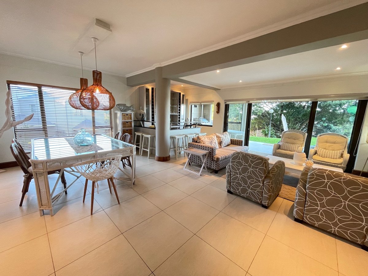 Eine idyllische, ruhige Umgebung mit Strand und Meer vor deiner Haustür. Perfekter Rückzugsort für eine spektakuläre Aussicht und unberührte Natur. Aktivitäten in der Nähe - Schwimmen, Tennis, Golf, Surfen, Tauchen, Angeln, Walbeobachten, Vogelbeobachten oder einfach nur Entspannen. Eigene sichere Wasserversorgung (falls Sie Neuigkeiten über die Wasserprobleme an der Küste von Natal in der Südküste gesehen haben!)