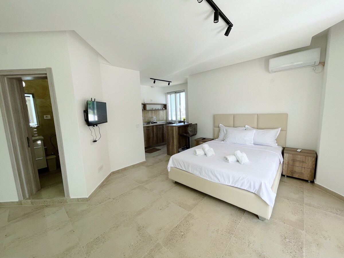 Enjoy a stylish holiday on the entire 2nd floor with a separate entrance. This modern, cozy home offers 2 bedrooms, a bathroom with bidet, kitchen, and living room. The Highlight: Large private terrace with a Jacuzzi for your use only, overlooking our new shared pool. Premium Extras: We provide luxury robes, slippers, shampoos, and fresh towels for both the bath and the pool. Everything you need for a relaxing escape!