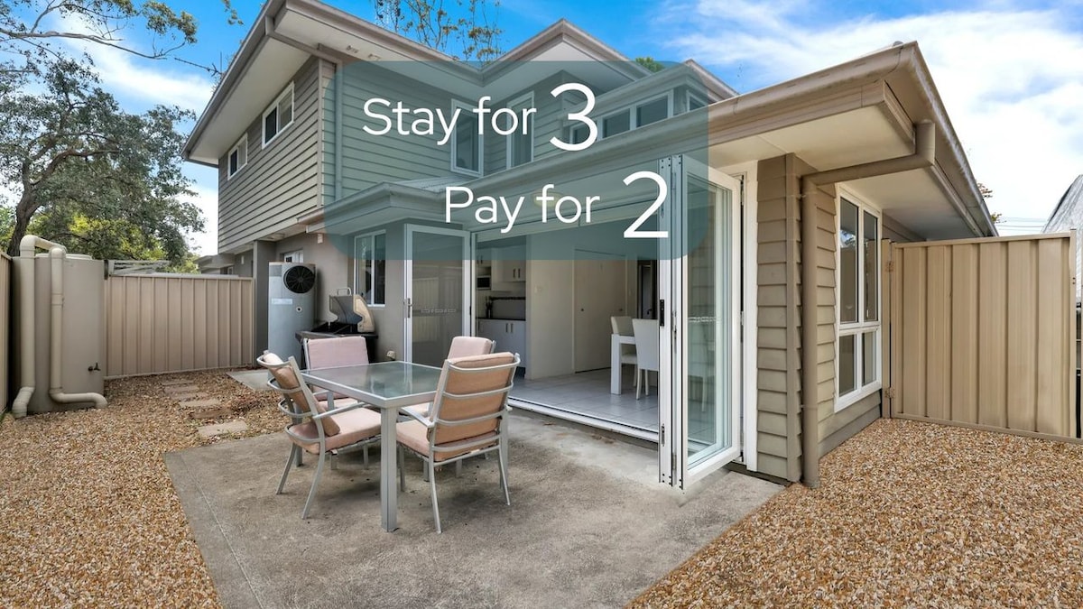 Sonniges, geräumiges, hochwertiges Stadthaus mit 3 Schlafzimmern + 2 Badezimmern, nur 5 Gehminuten vom beliebten Surf Beach und dem lokalen Einkaufszentrum entfernt! Genieße deine private Terrasse, deinen Außenbereich und deinen Grill. Der perfekte Ort, um Batemans Bay, Mogo und die Südküste zu erkunden! Dieses hervorragende einstöckige Stadthaus bietet 180 m ² gut gestaltete Wohnfläche. Mit hochwertigen Möbeln, gut ausgestatteten Küchen, Rückwärtsgangheizung/-kühlung, Wäsche und sicheren abschließbaren Garagen sind Sie hier äußerst komfortabel.