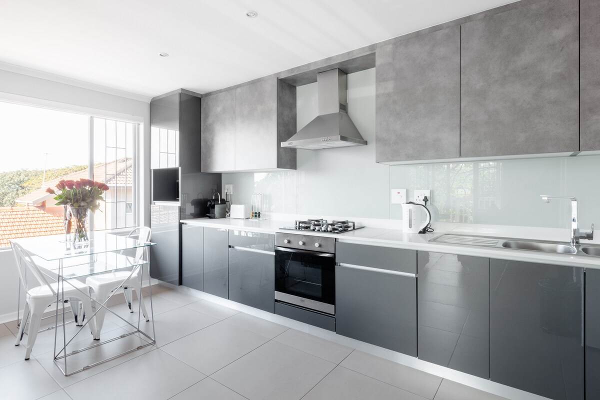 Trinke deinen Morgenkaffee im Schatten eines Baumes auf dem Balkon und tanke Energie, um im darunter liegenden Gemeinschaftspool ein paar Bahnen zu ziehen. Die Wohnung selbst ist in kühlen Grautönen gehalten, mit roten Farbtupfern in den Streukissen und interessanten Kunstwerken. Gesamte Einheit mit schöner Veranda im Schatten eines alten Leopardenbaums. Tolle, voll ausgestattete Küche. Schöner Meerblick. Großes Badezimmer. Bequemes Bett. Schlafcouch. Privater Eingang. Swimmingpool. Swimmingpool, private Außenveranda. Khombi ist vor Ort immer für dich da. Sie ist unsere Managerin. Mache einen Spaziergang zum Naturschutzgebiet Virginia Bush und gehe dann weiter, um den Strand zu erreichen. Gehe in eine Richtung für fantastischen frischen Fisch, in eine andere für großartiges Curry und chinesisches Essen und fahre zur Mackeurtan Avenue für eine noch größere Auswahl an Restaurants und Bars. In dieser Gegend gibt es jede Menge Uber-Taxis zu sehr günstigen Preisen. Da der Schwerpunkt auf der Privatsphäre liegt, werden wir dich nicht stören. Khombi wird dir die Schlüssel zu deiner Wohnung übergeben. Sie wird reinigen, wenn es dir passt. Wenn du etwas brauchst, kannst du sie gerne anrufen. Es gibt eine Schlafcouch, die für ein Kind geeignet ist. Auch ein Campingbett und ein Hochstuhl.