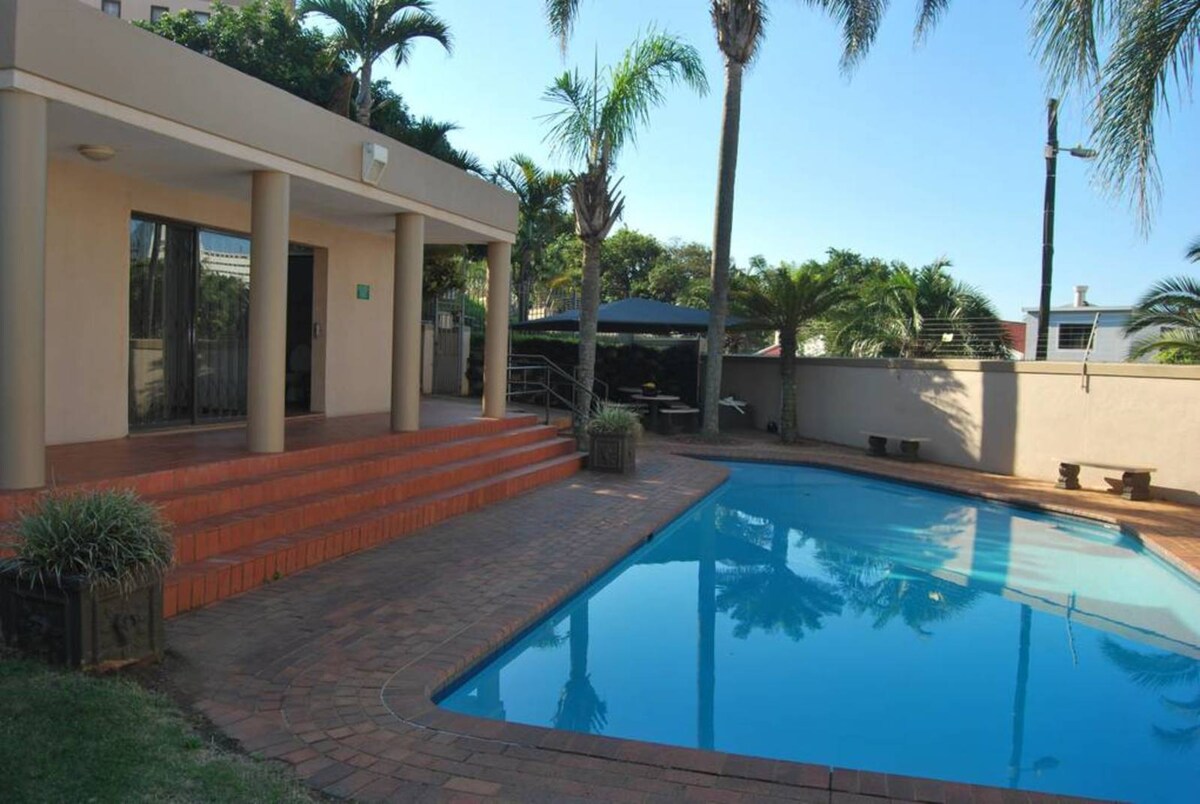 Herrliche Selbstversorger-Wohnung am Strand von Umhlanga. Atemberaubender Meerblick von jedem Zimmer aus und ein schönes Interieur. Entspanne dich mit der ganzen Familie in dieser 2-Zimmer-Wohnung mit der fantastischsten Lage an der Strandpromenade. Die Unterkunft befindet sich in einem sicheren Komplex mit Aufzug, zwei Pools, überdachten Parkplätzen und einem schattigen Grillbereich. Zwei eigene Badezimmer, eine offene, voll ausgestattete Küche und ein schöner Balkon. Klimaanlage, WLAN, DSTV und Showmax. Gereinigt von Montag bis Samstag, ausgenommen an Feiertagen.