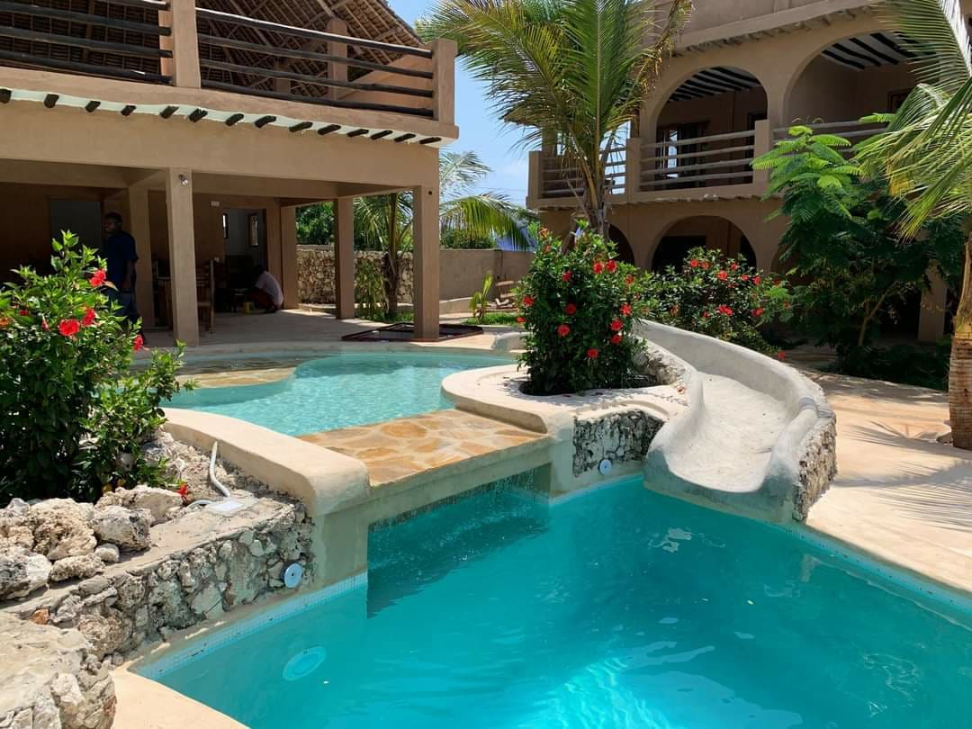 Welcome to our stunning beachfront apartment, your perfect tropical escape in Zanzibar. The apartment features two comfortable bedrooms with a king-size and a queen-size along with a cozy living room and a full bathroom, providing everything you need for a relaxing stay. Wake up each morning to a delicious buffet breakfast included for all guests, then step outside to enjoy the gentle ocean breeze, the soothing sound of waves, and a swimming pool overlooking the ocean.