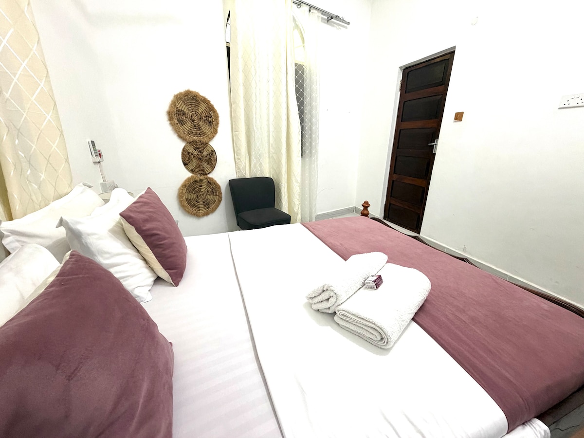 Enchanting 4 room guesthouse in historic Stone Town -Contemporary amenities, 5 min walk to beach, free Wifi -King bed, private bath, steep stairs from ground floor to middle floor and from middle floor to top floor -Spotless haven, private balcony, AC -Charming service, for your convenience, an in-house cook can prepare local fare from our tasty menu, a lite breakfast is included -Clean drinking water -Friendly locals, fascinating vicinity -Restaurants, shops & sights within minutes of walking
