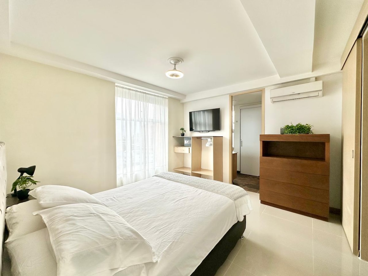 Indulge in Medellín from this exclusive studio with a private skyline jacuzzi, king bed, A/C, and breathtaking city views — the ultimate retreat for elegance, comfort, and vibrant nightlife. Nestled in El Poblado, steps from Provenza’s restaurants, rooftop bars, cafés, and galleries, with Parque Lleras nightlife minutes away. Enjoy 54" smart TV with Netflix, high-speed Wi-Fi workspace, kitchen, washer/dryer, gym, sauna, pool, and on-site bars, restaurants, and gallery.