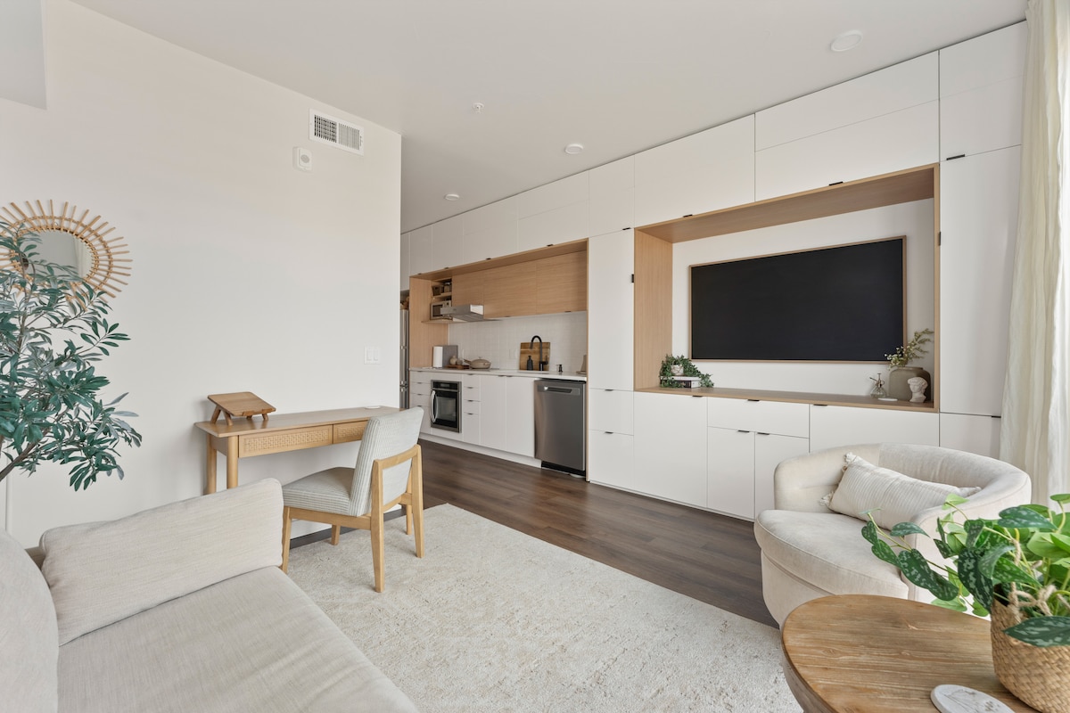 Dieser moderne Rückzugsort ist voller stilvoller Dekoration und liebenswerter Annehmlichkeiten. Von brandneuen Fernsehern, einem eigenen Arbeitsplatz, flammend schnellem WLAN, Reiseutensilien und einem Barwagen bis hin zu einem Fitnesscenter und Grills – in dieser Unterkunft fühlst du dich wie zu Hause. Sie bietet insgesamt 4 Personen Platz mit 1 Kingsize- und 1 Queensize-Bett sowie einer Couch. Nur einen kurzen Spaziergang vom Larimer Square, dem Union Station, dem Coors Field und allem, was die Innenstadt von Denver zu bieten hat, entfernt. Nur eine 2-stündige Fahrt von den Bergen und dem Skigebiet entfernt.