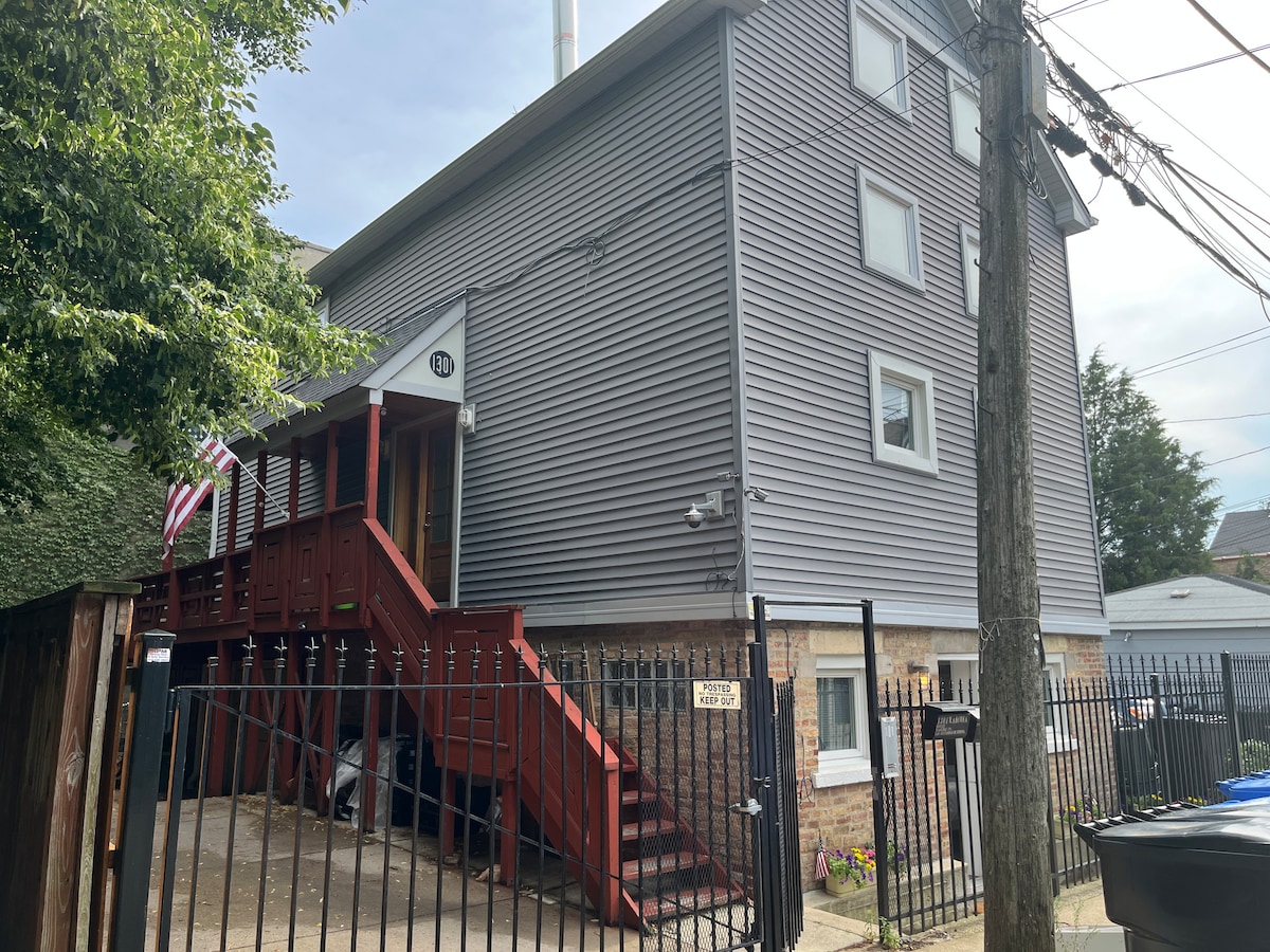 2 Schlafzimmer 1 Kingsize- und 1 Queensize- /1-Bad-Wohnung in einem Gebäude mit 2 Einheiten (wir haben 2 Zusatzbetten), die 1/2 Block vom Union Park entfernt sind. Wenn du mit der Gegend nicht vertraut bist, endet Union PARK Randolph Row mit mehreren Michelin-Restaurants wie Little Goat oder Smyth entweder auf oder 1 Block von Randolph. 2 1/2 Blocks zur grünen rosa Linie oder 1/2 Meile zum Rush/UIC Medical District. Alles, was du für die komplette Anbindung an die Stadt benötigst. Dies ist das oberste Stockwerk eines Gebäudes mit 2 Einheiten.