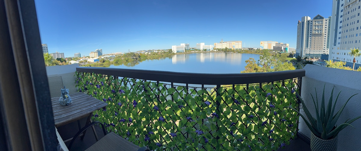 Enjoy a stylish experience at this centrally-located rooftop terrace. Located at the Enclave Suites, this unit features a rooftop terrace with views overlooking Sandy Lake. Recently remodeled, it boasts practical functionality with beautiful design. This unit is everything you need to enjoy a vacation in Orlando. It is centrally located off of International Drive and minutes from Universal Studios, Volcano Bay, SeaWorld, Disney World and much more. Enjoy a luxurious stay without the hefty price.