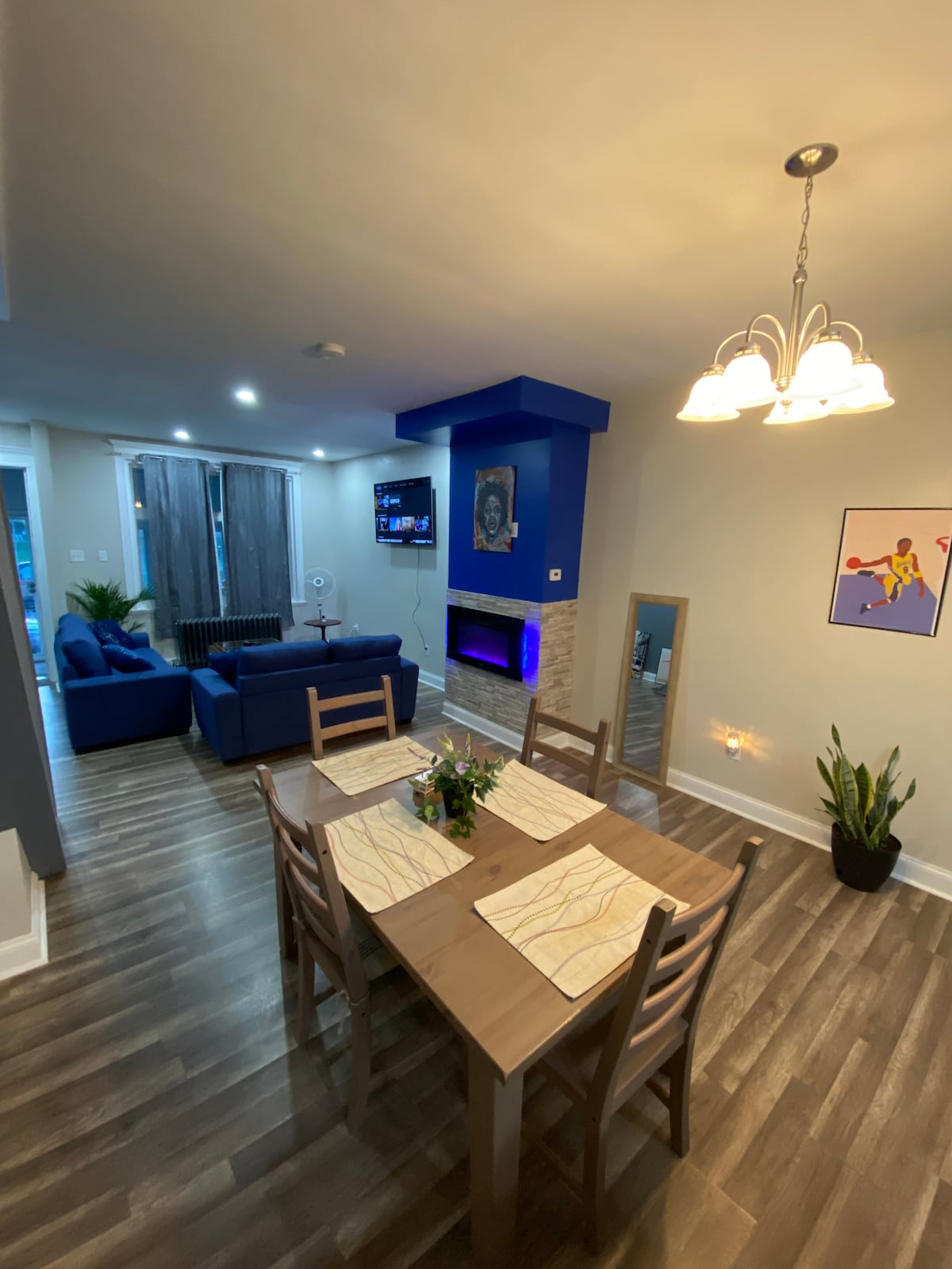 Open-concept living and dining layout with modern finishes, spacious seating, and a private deck for relaxing. Situated on a quiet corner lot with minimal through traffic and easy driveway parking, the home comfortably sleeps 6 and is well-suited for group stays and small gatherings . Professionally cleaned and thoughtfully prepared for every stay, with convenient self check-in for flexible arrivals. Planning a small gathering? Message us first to confirm details .