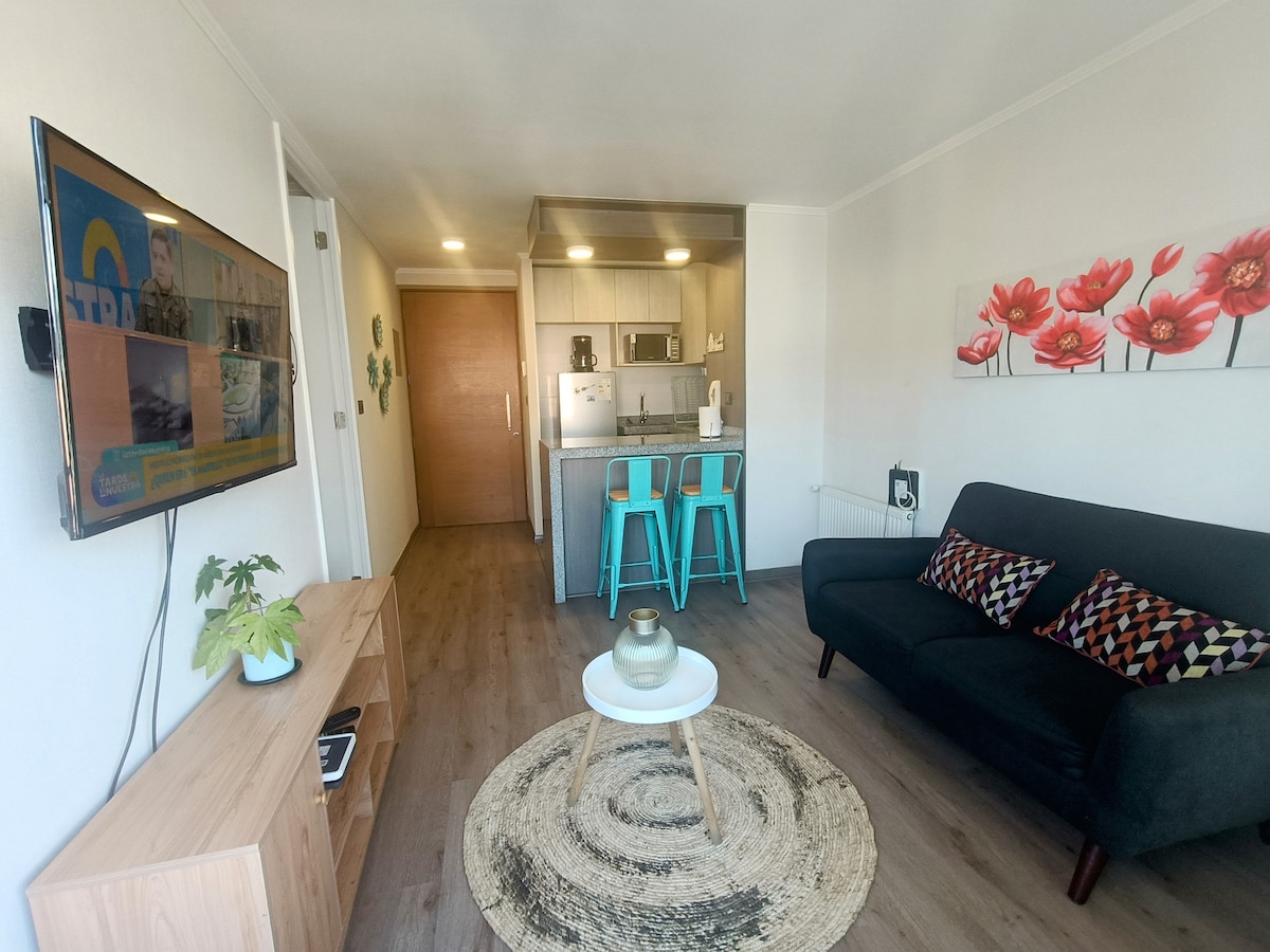 Genießen Sie unsere 1D1B-Wohnung in Concepción, in der Nähe von Universitäten, Verkehrsmitteln, Einkaufszentren und Restaurants. Ideal für 2 bis 4 Personen, die Wohnung verfügt über ein Doppelbett, 1 Doppelschlafcouch, eine ausgestattete Küche, ein Bad mit Badewanne, einen Smart-TV und einen Tisch zum Arbeiten/Essen. Das Gebäude bietet einen Fitnessraum, einen Coworking-Raum, einen Lieferraum, eine Wäscherei, Panorama-Pavillons und eine Gourmet-Lounge. Bequemlichkeit und Komfort in zentraler Lage!