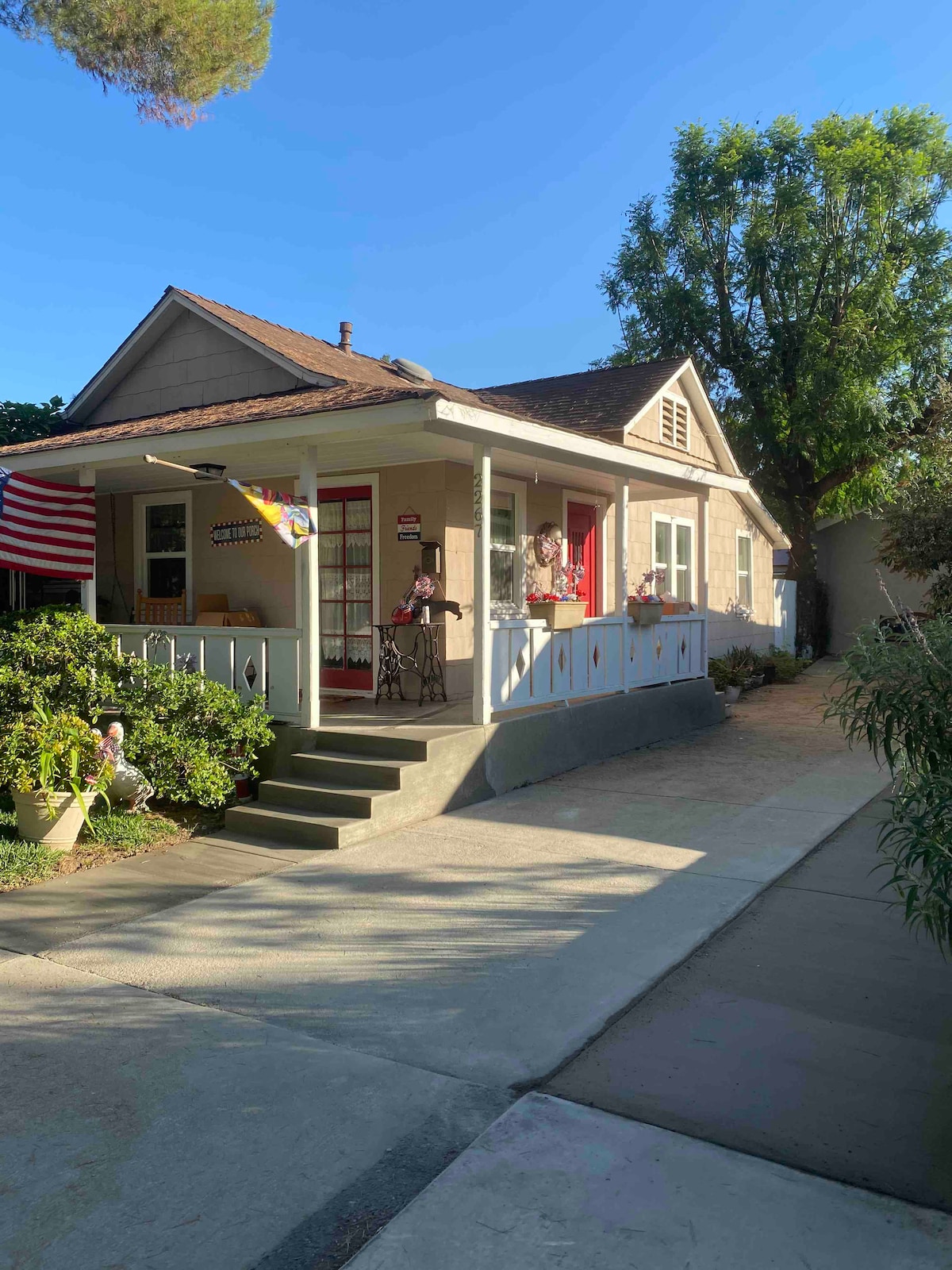 Relax with the whole family at this peaceful place to stay. Located close to the University of La Verne and Claremont colleges. This is house is conveniently located to the fairplex and train station. Enjoy walking to local restaurants and down town businesses. Enjoy a bike ride around the park. This unit comes with two bikes to use. Enjoy sitting on the front porch swing watching the leaves fall from this tree lined street.