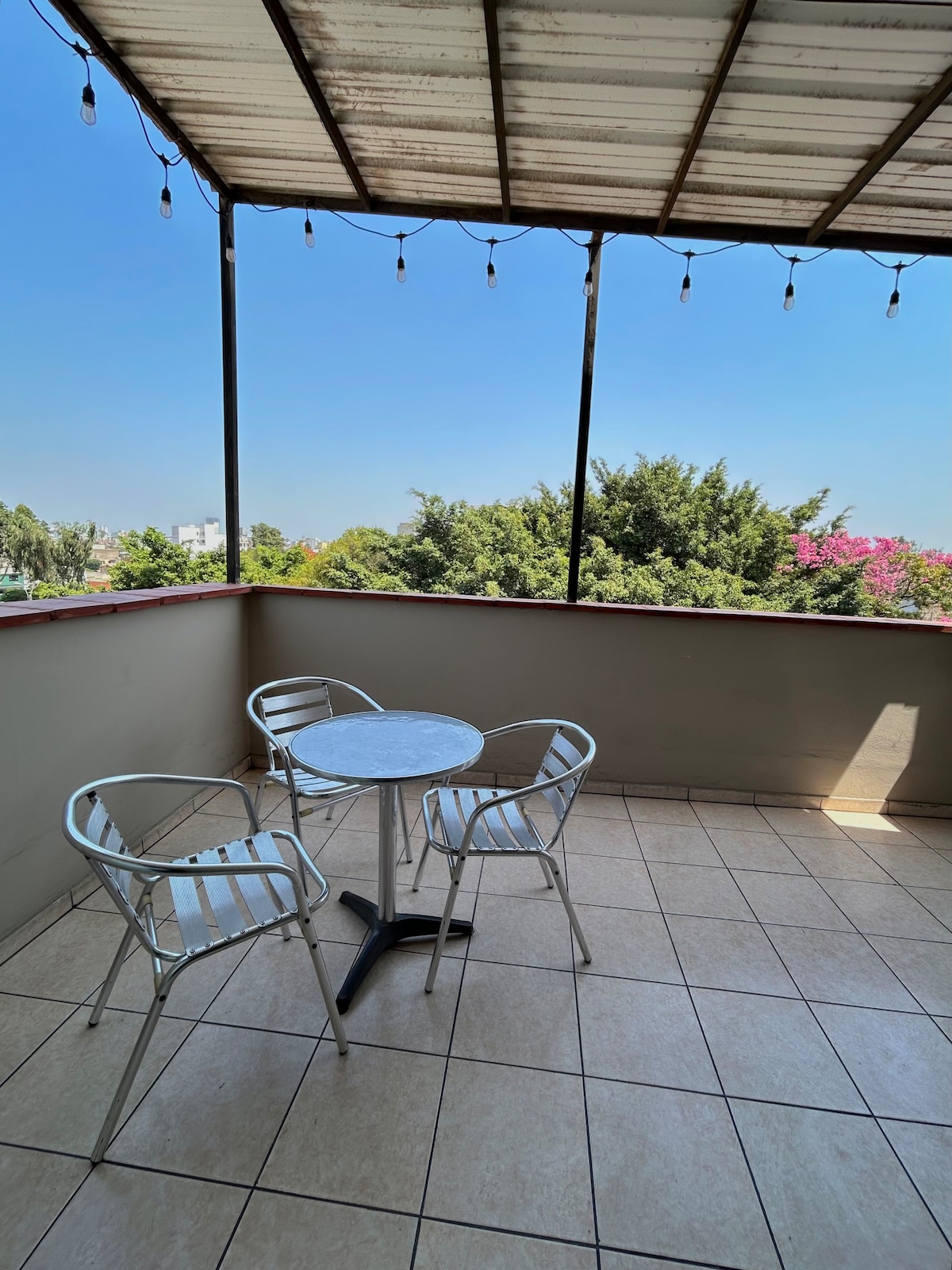 Mini depa privado e independiente en 2do. piso (acceso con escaleras) completamente amoblado, consta de tres ambientes: Dormitorio con cama queen size, amplio closet y escritorio, Wifi fibra óptica, Smart TV 50” con WinTv, Cocina/comedor, 1 sofá cama y al lado baño completo privado. Áreas comunes como terraza, jardín y piscina son de uso compartido. Barrio tranquilo y seguro, vigilancia privada. Cerca de avenidas con trasporte público, bodegas, banco, lavandería, restaurantes, farmacias, etc.