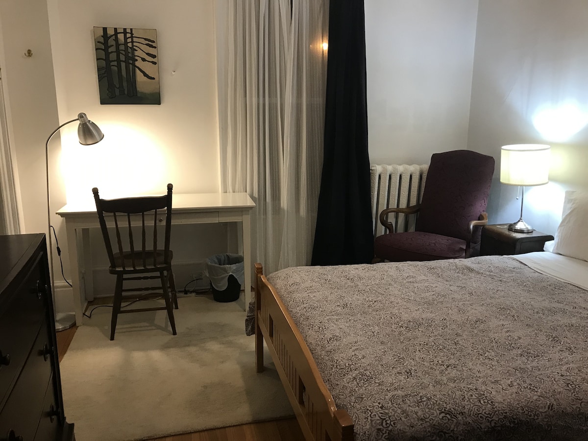 Schönes freistehendes historisches Haus an einer mit Bäumen gesäumten Straße in der Innenstadt von Toronto. Wellesley Subway einen halben Block entfernt. 1 Schlafzimmer mit eigenem Bad, formelles Esszimmer, Wohnzimmer, Küche mit Frühstücksraum, separater Fernsehraum und ungefähr eine Million Bücher zum Lesen :) Wir haben auch keine versteckten Reinigungsgebühren (hassen Sie die nicht?) und unser Hausmeister kümmert sich um Bettwäsche, Handtücher, Müll, Reinigung usw., wenn Sie abreisen.