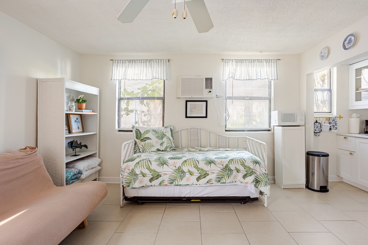 Dieses sonnige 405 sft große Strandstudio wird dein perfekter Rückzugsort von allem sein! Nur wenige Schritte vom Strand entfernt. Zweiter Stock mit einer voll ausgestatteten Küche, Schlafplätze für 4 Personen: 1 Murphy-Bett (Queensize) kommt aus der Wand und 1 Ausziehsofa, ebenfalls Queensize. Diese Wohnung verfügt über einen schönen privaten Balkon, auf dem du sitzen und den Blick auf den Innenhof/Garten genießen kannst. Die Küche verfügt über Töpfe, Pfannen und alle wichtigen Küchenutensilien, um deinen Urlaub zu genießen.