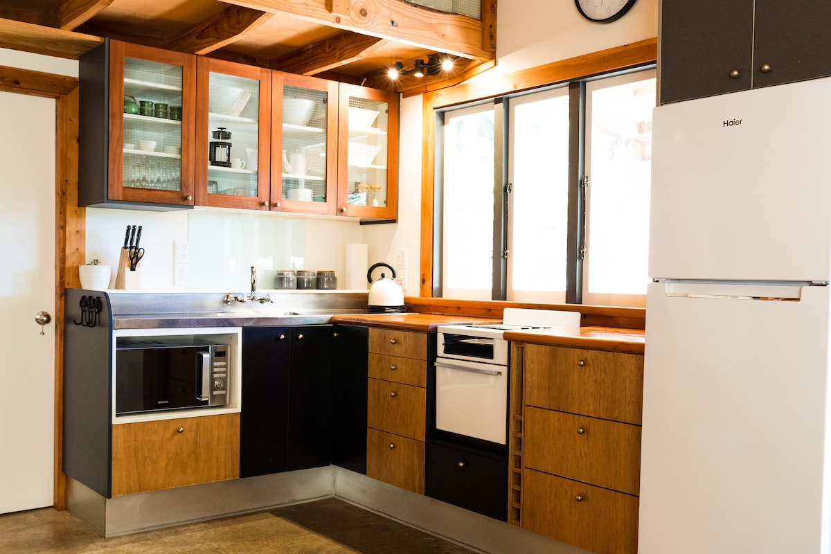 Ein sonniges Landhaus und ehemaliges Kunststudio befindet sich in unserem Bio-Garten mit reichlich Vogelleben und Blick auf die Berge. Liebevoll renoviert, ist es komplett unabhängig mit einer schönen Terrasse, wo du bunte Sonnenuntergänge und einen wunderbaren Nachthimmel genießen kannst. Wir sind 8 Fahrminuten von Motueka und einem der beliebtesten Cafés der Region entfernt und 1 km die Straße hinunter kannst du dich dem Great Taste Bike Trail anschließen. Wir sind zentral für die Nationalparks, Strände und viele weitere Abenteuer.
