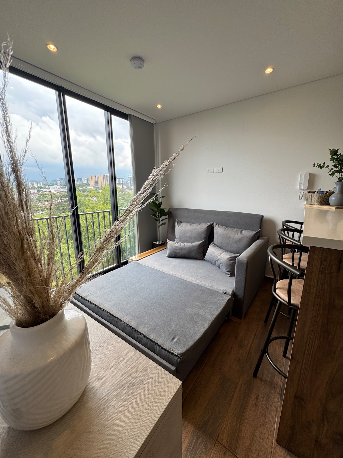 **Charmantes Studio-Apartment in Armenien** Genießen Sie einen unvergesslichen Aufenthalt in unserem Studio-Apartment mit Blick auf die Bergkette, im vierten Stock. In einer ausgezeichneten Gegend von Armenien gelegen, befinden Sie sich in der Nähe von Parks, Einkaufszentren, Kliniken, Restaurants und vielem mehr. Mit einfachem Zugang zu öffentlichen Verkehrsmitteln erreichst du Touristenziele wie Circasia, Salento und Filandia. Das Gebäude bietet einen Pool, Whirlpool, Sauna, Billard und Gemeinschaftsräume. Perfekt für Ihr Abenteuer im Eje Cafetero!